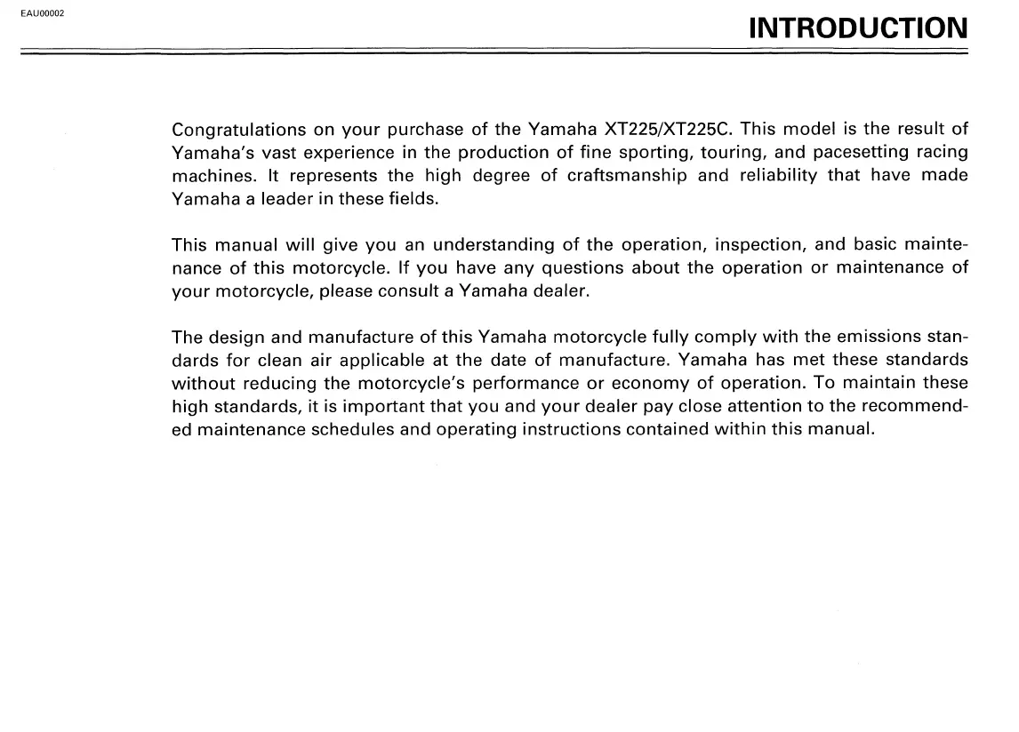 Yamaha XT225L - INTRODUCTION