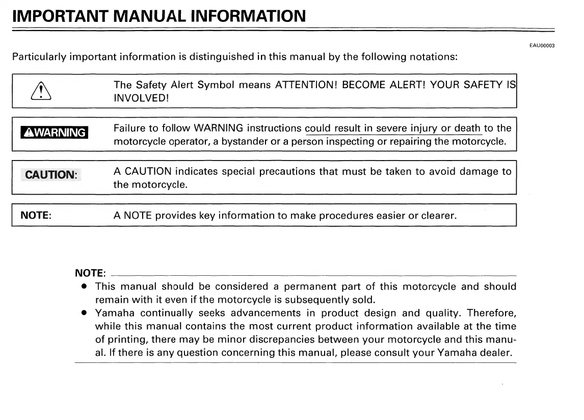 Yamaha XT225L - IMPORTANT MANUAL INFORMATION