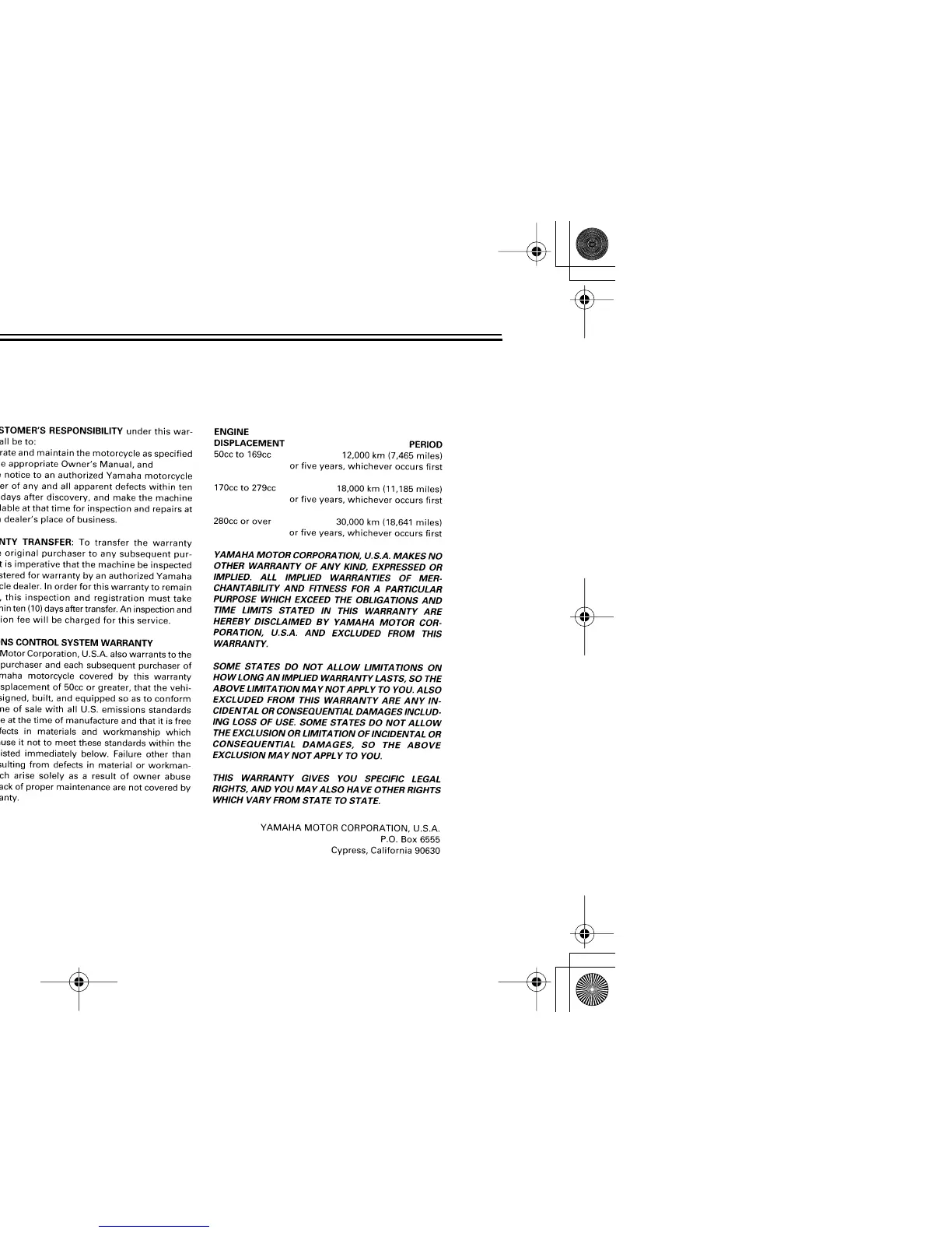 YAMAHA MOTOR CORPORATION, U.S.A. STREET AND ENDURO MOTORCYCLE LIMITED