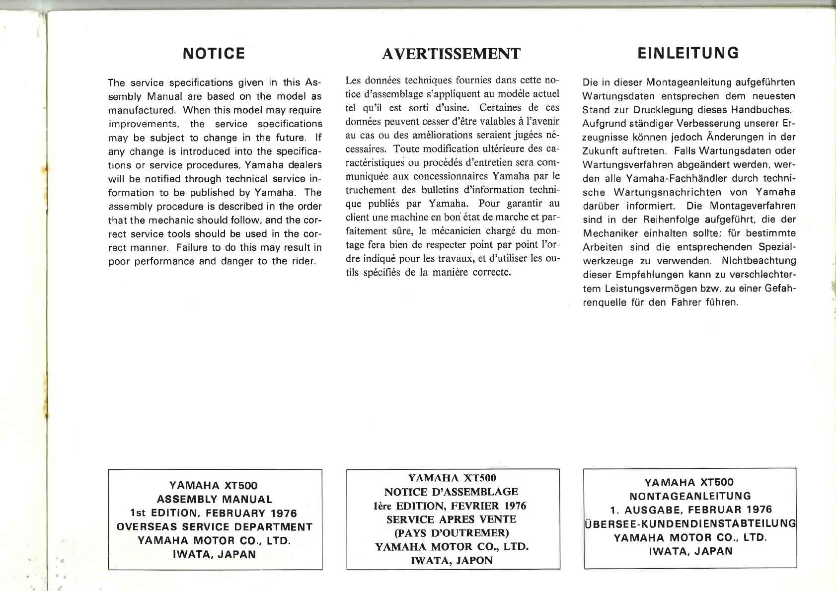 AMAHA XT500