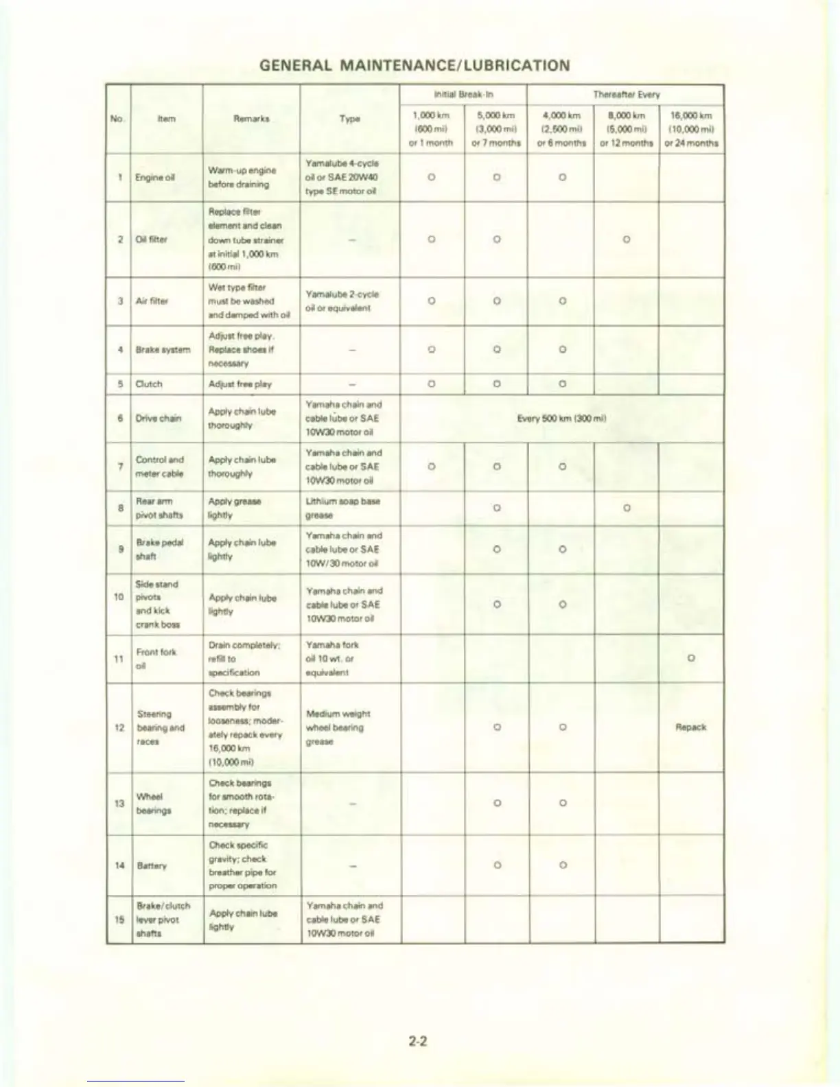 Yamaha XT550J - General Maintenance;Lubrication
