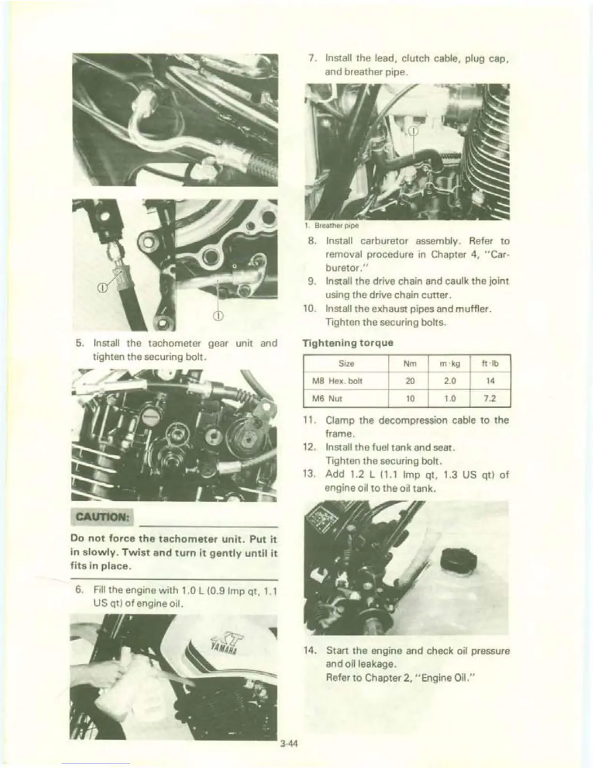 7. Install the lead, clutch cable, plug cap,
