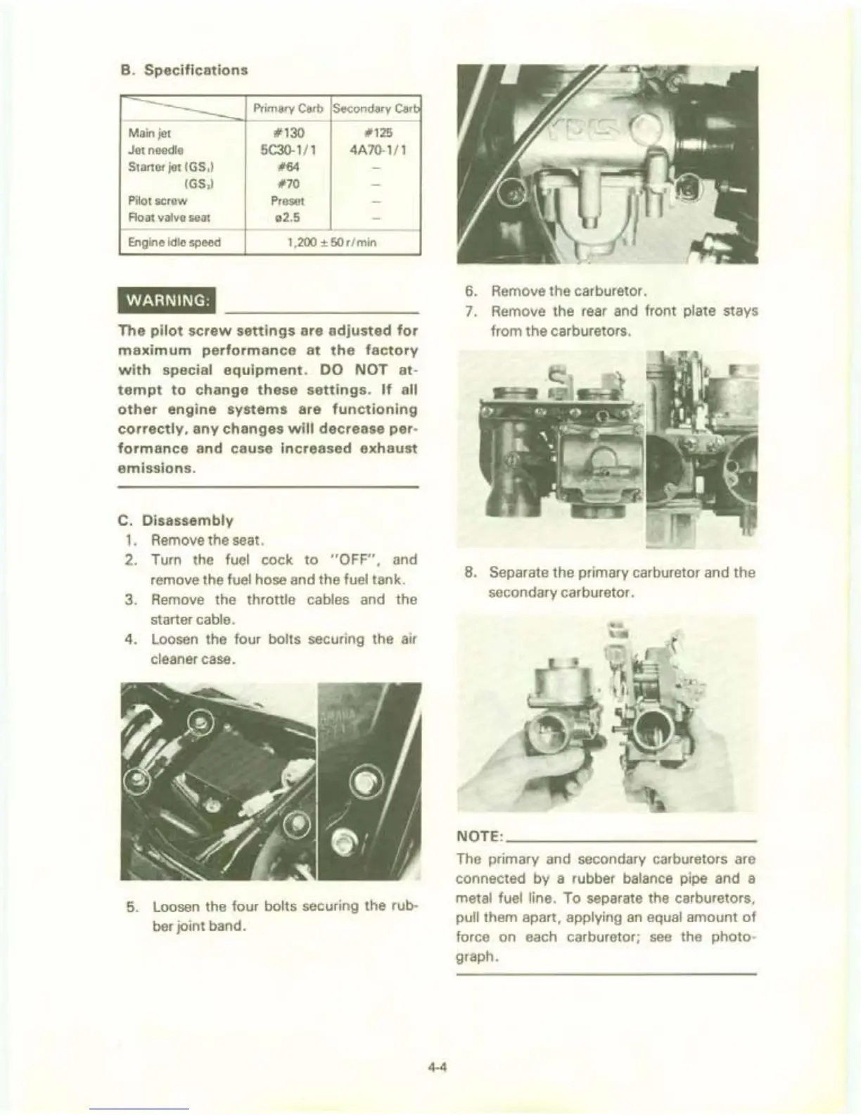 Separate the primary carburetor and