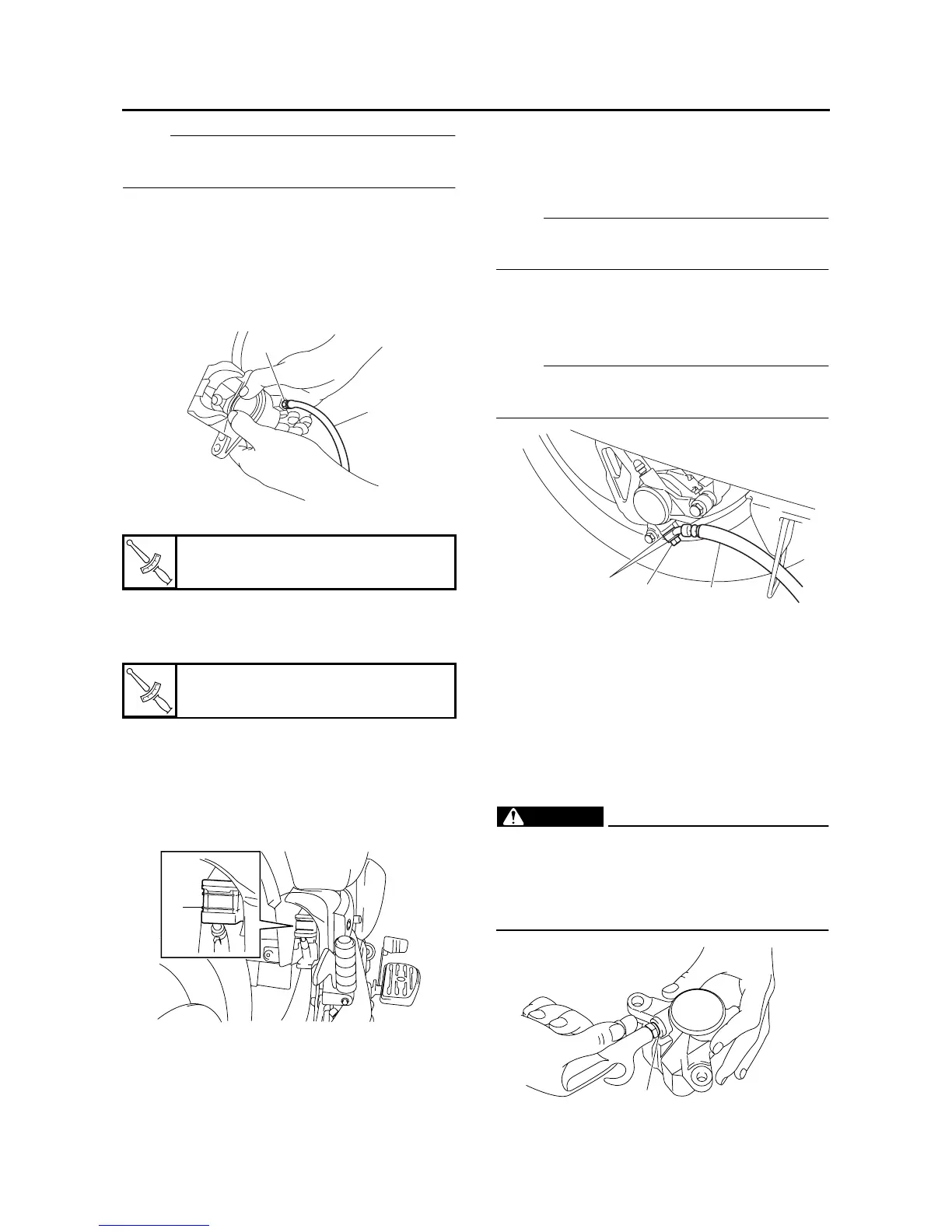• Never try to pry out the brake caliper pis-