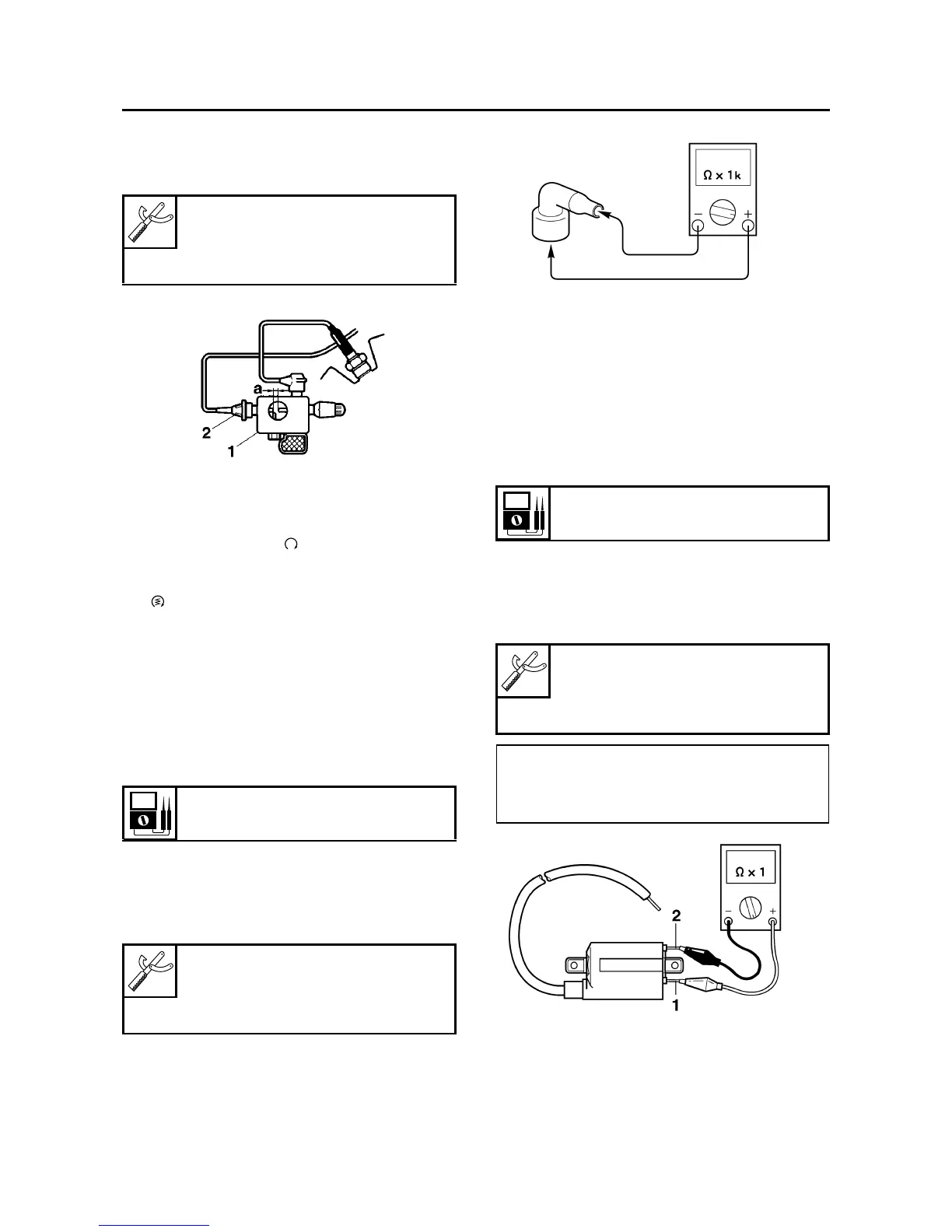 b. Connect the pocket tester (Ω × 1) to the igni-