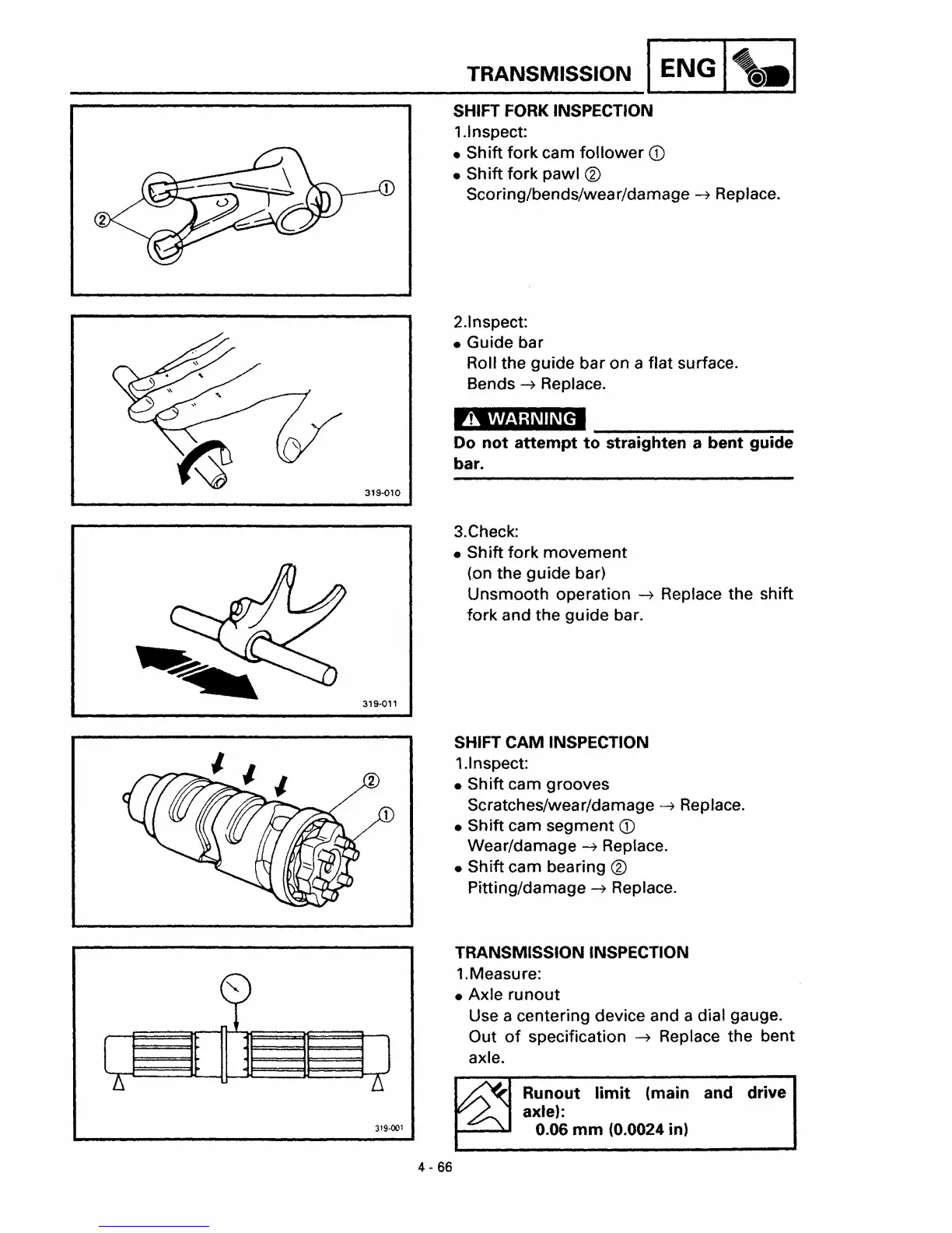 Yamaha XVS650 - Shift Fork Inspection; Shift Cam Inspection; Transmission Inspection