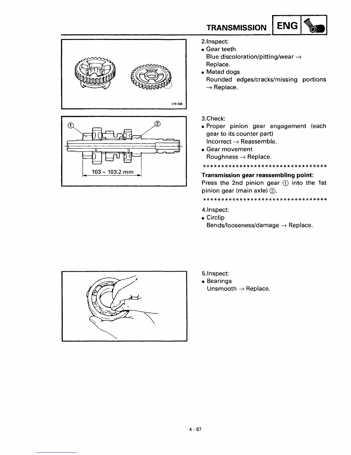 Transmission gear reassembling point:
