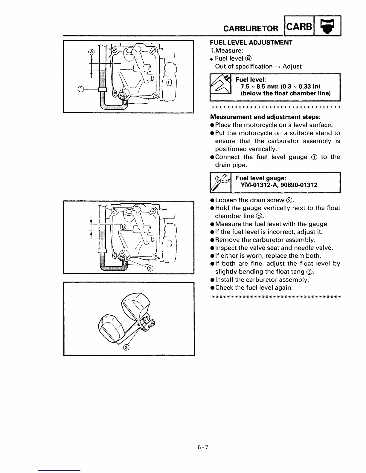 • If the fuel level is incorrect, adjust it.