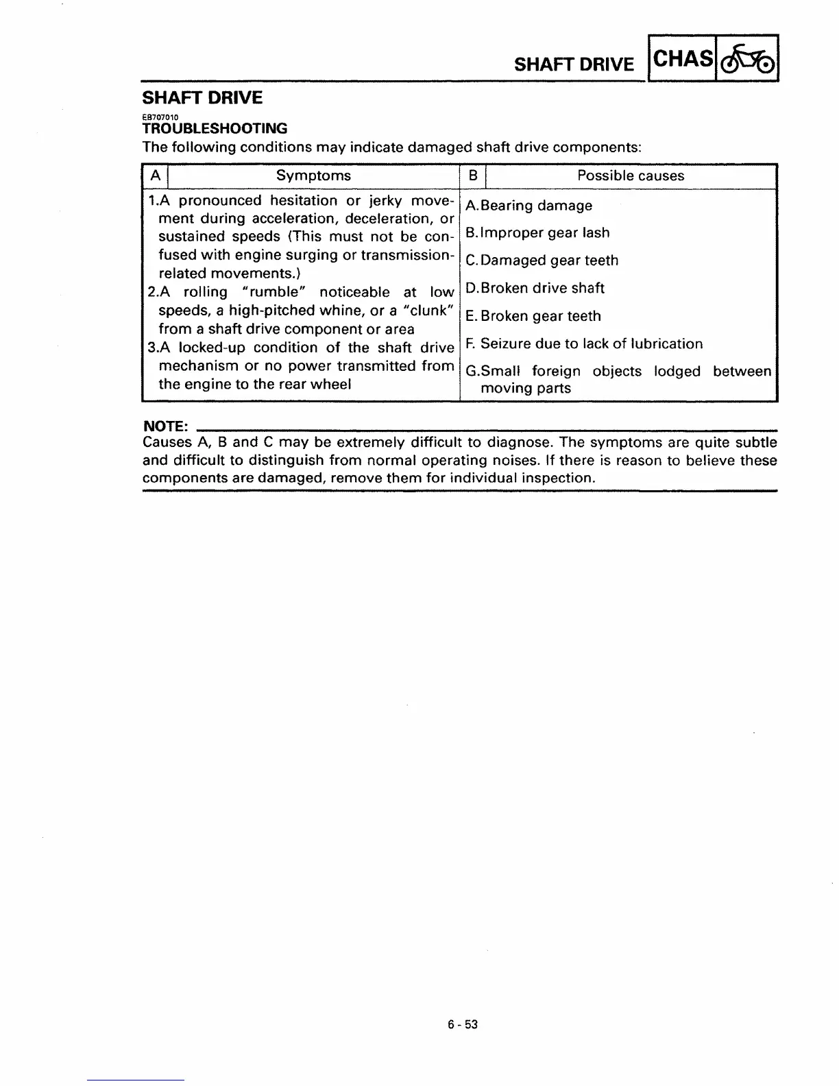 indicate damaged shaft drive components: