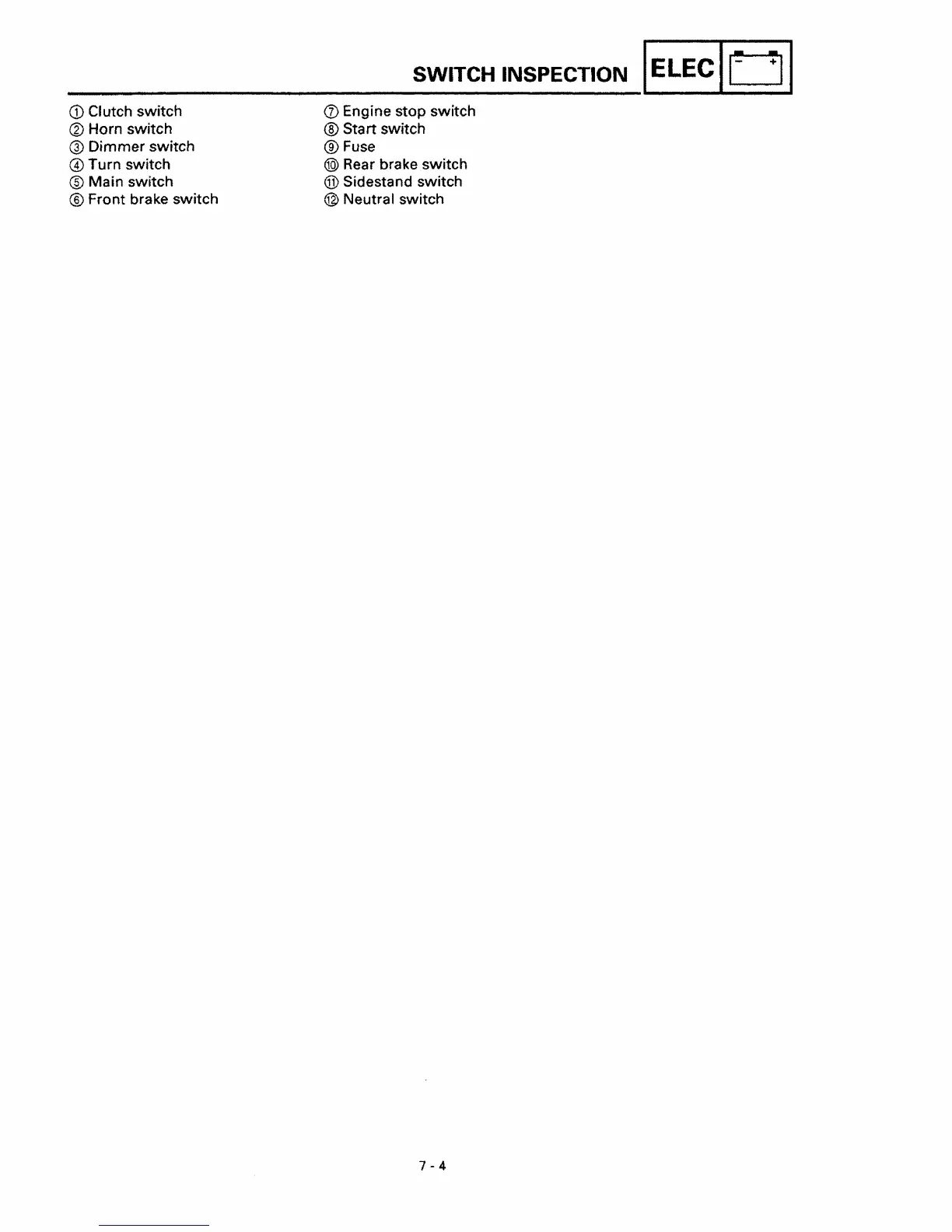 Yamaha XVS650 - SWITCH CONTINUITY INSPECTION