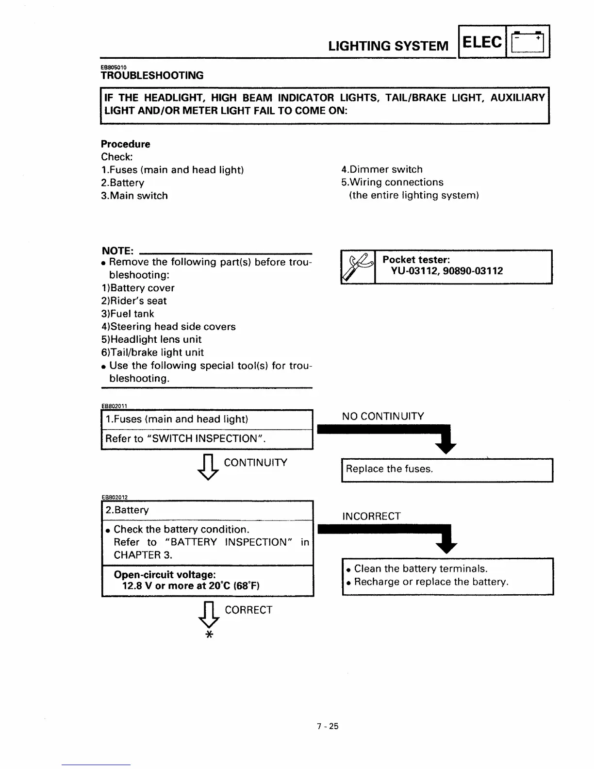 IF THE HEADLIGHT, HIGH BEAM INDICATOR LIGHTS, TAIL/BRAKE LIGHT, AUXILIARY