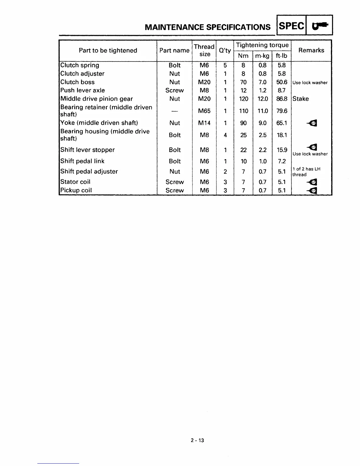 MAINTENANCE SPECIFICATIONS