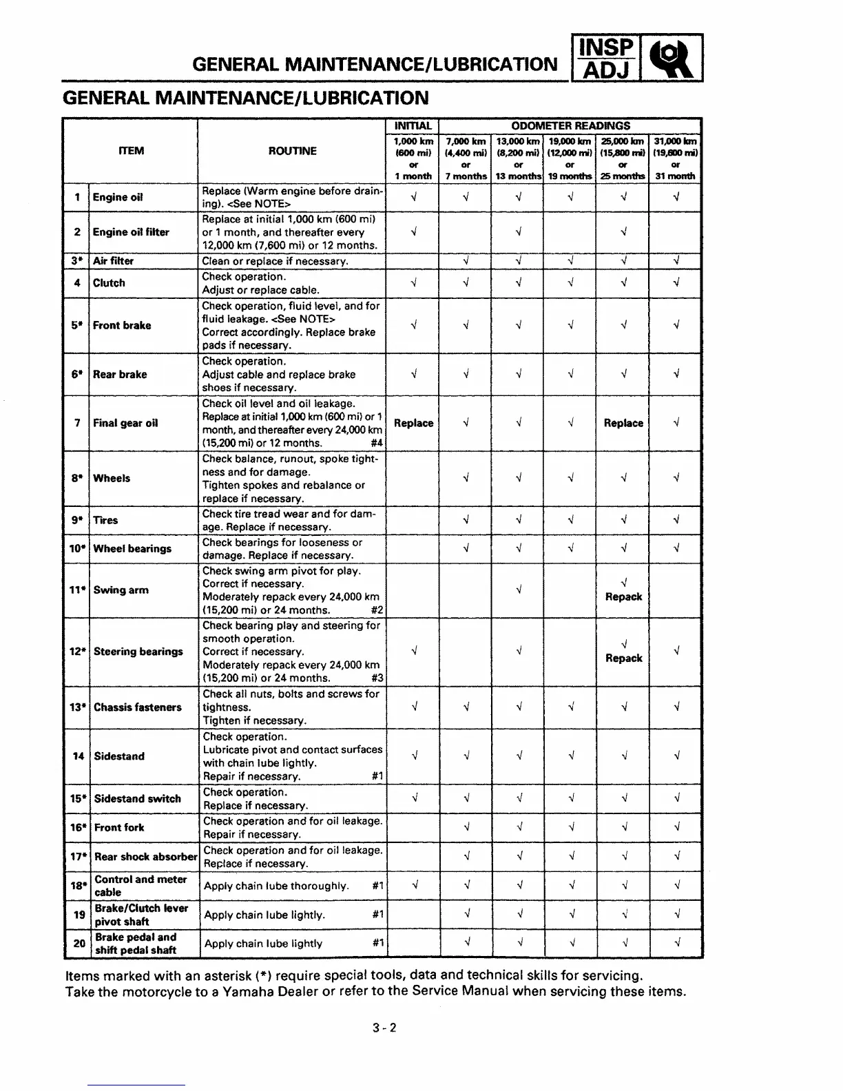 asterisk (*) require special tools, data and technical skills