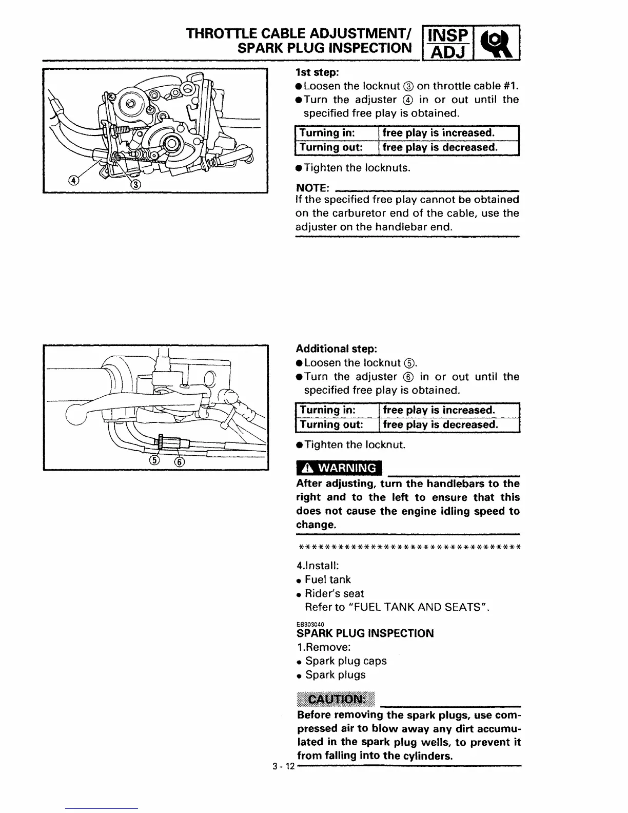 Yamaha XVS650 - Throttle Cable Adjustment; Spark Plug Inspection