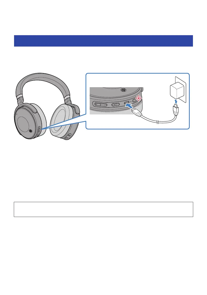 The indicator lights up during charging, and turns off when charging is completed.