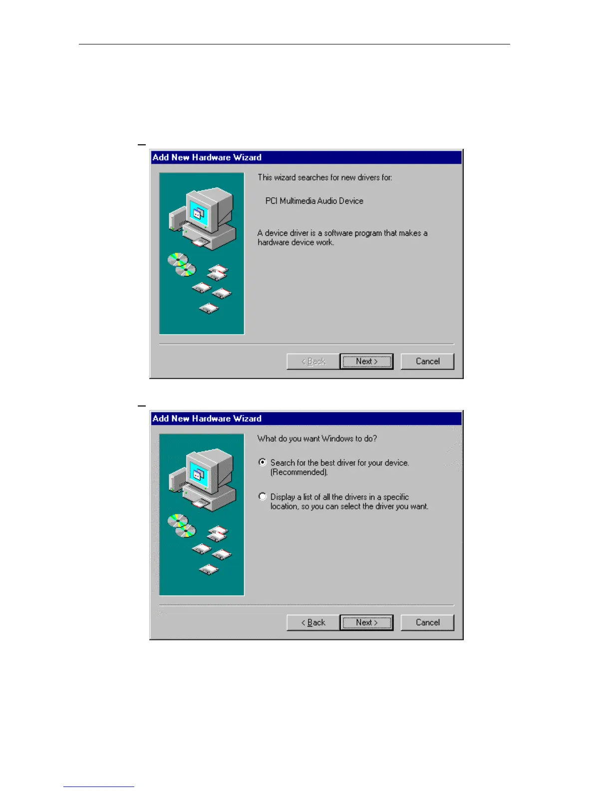 2.) The “Add New Hardware Wizard” dialog box will appear as shown below.