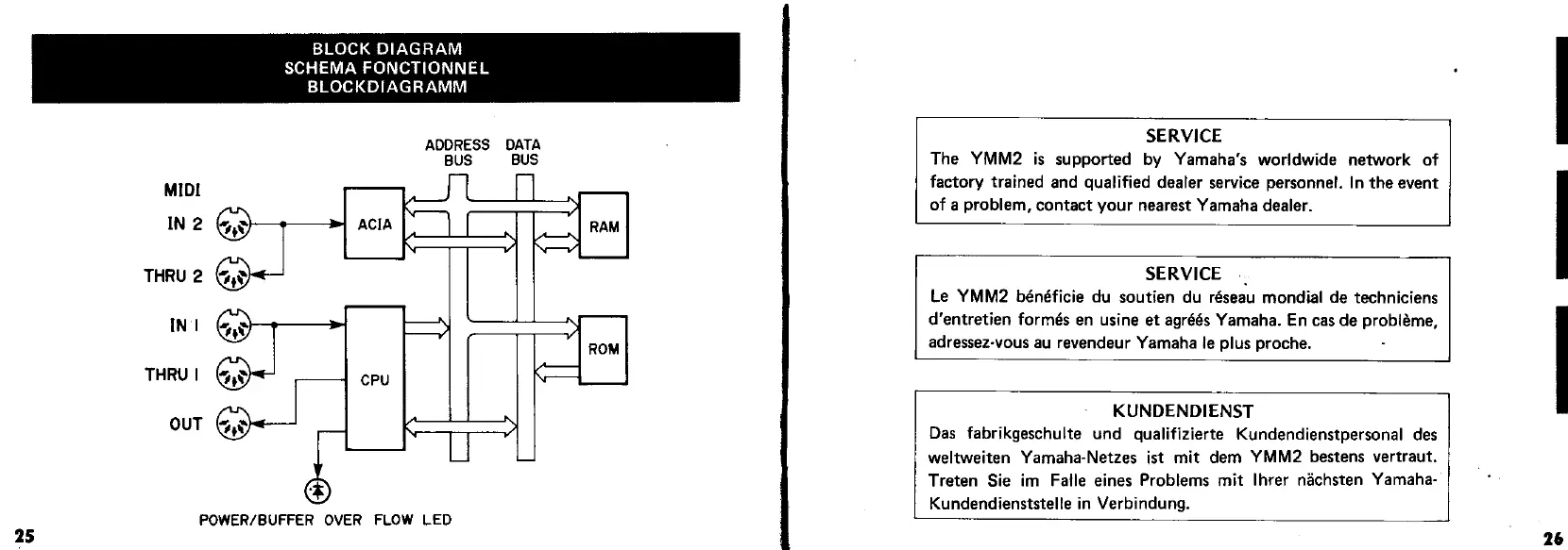 Yamaha YMM2 - Block Diagram; Functional Block Diagram; Service; Contacting Yamaha Dealer for Service