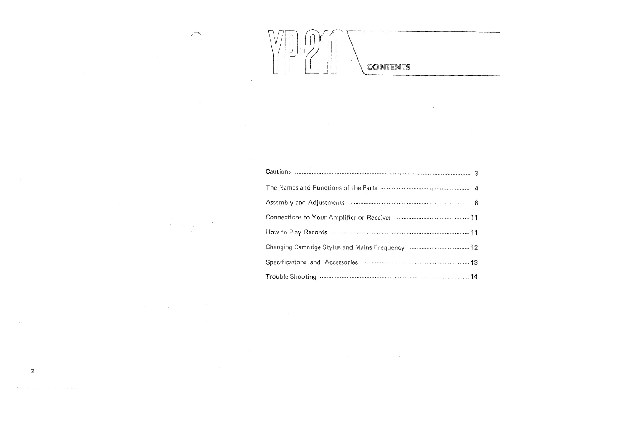 Yamaha YP211 - Contents