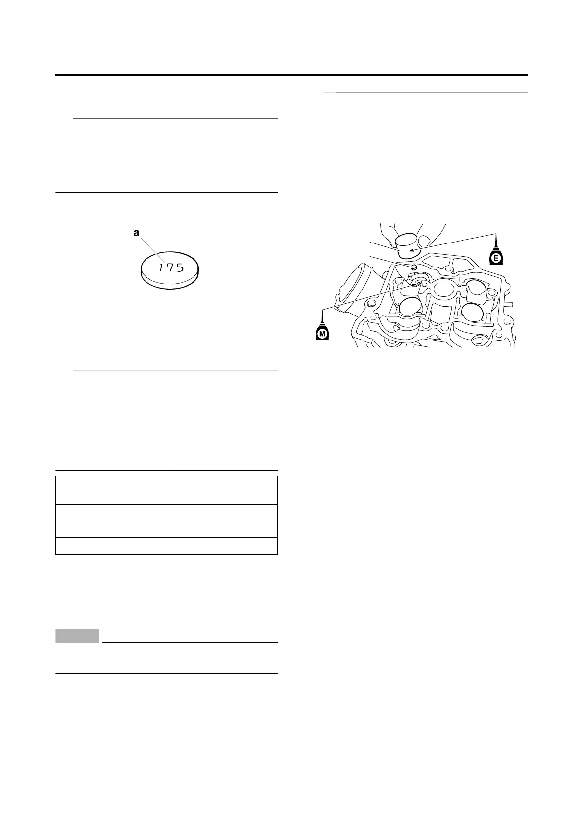• The adjusting pad number “a” is indicated on