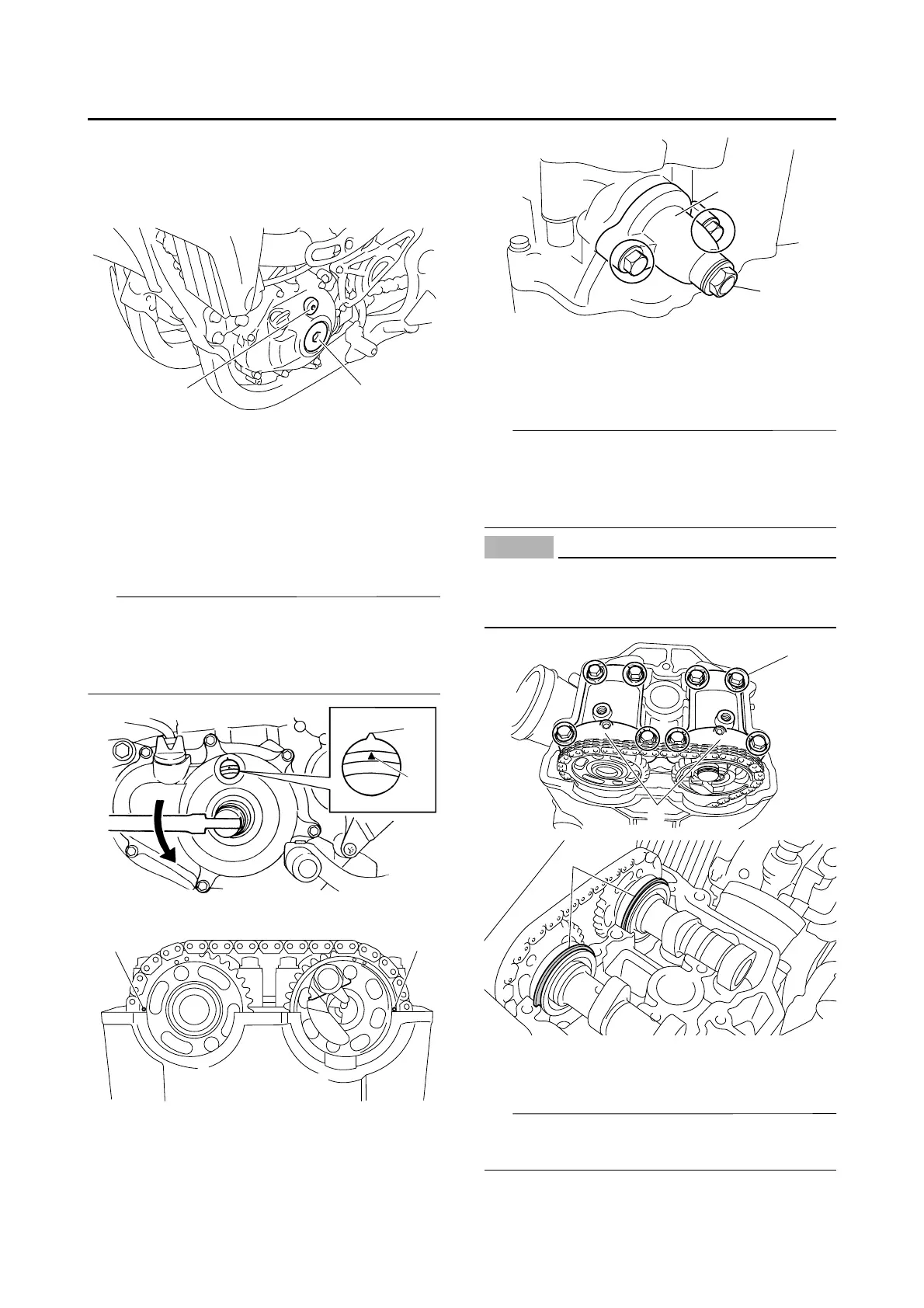 • Remove the bolts (camshaft cap) in a criss-