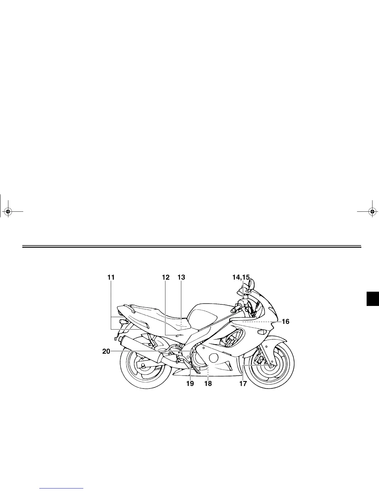 14. Front fork spring preload adjusting bolt (page 3-12)