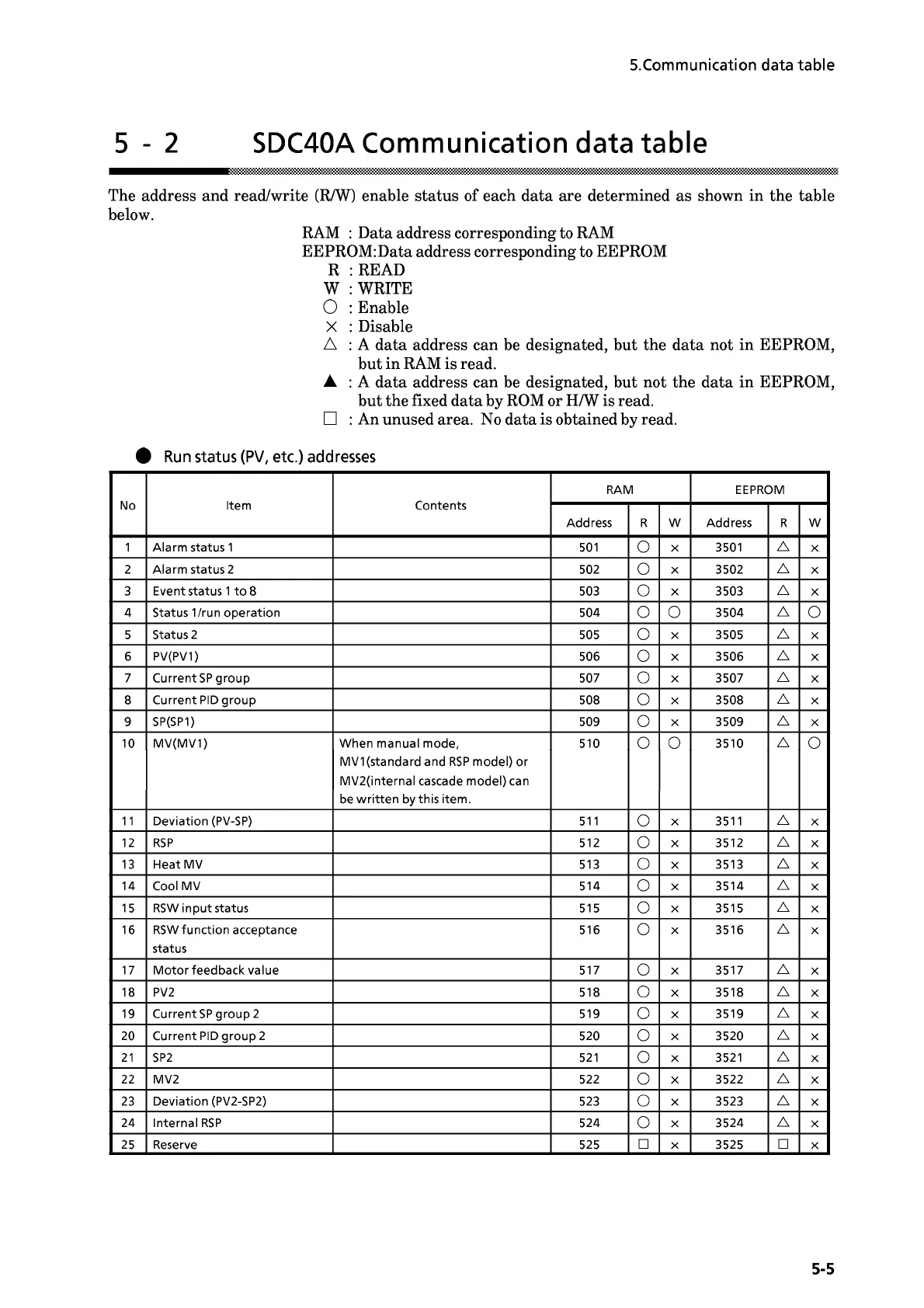 Yamatake DIGITRONIK SDC40A - 5 - 2 SDC40 A Communication data table