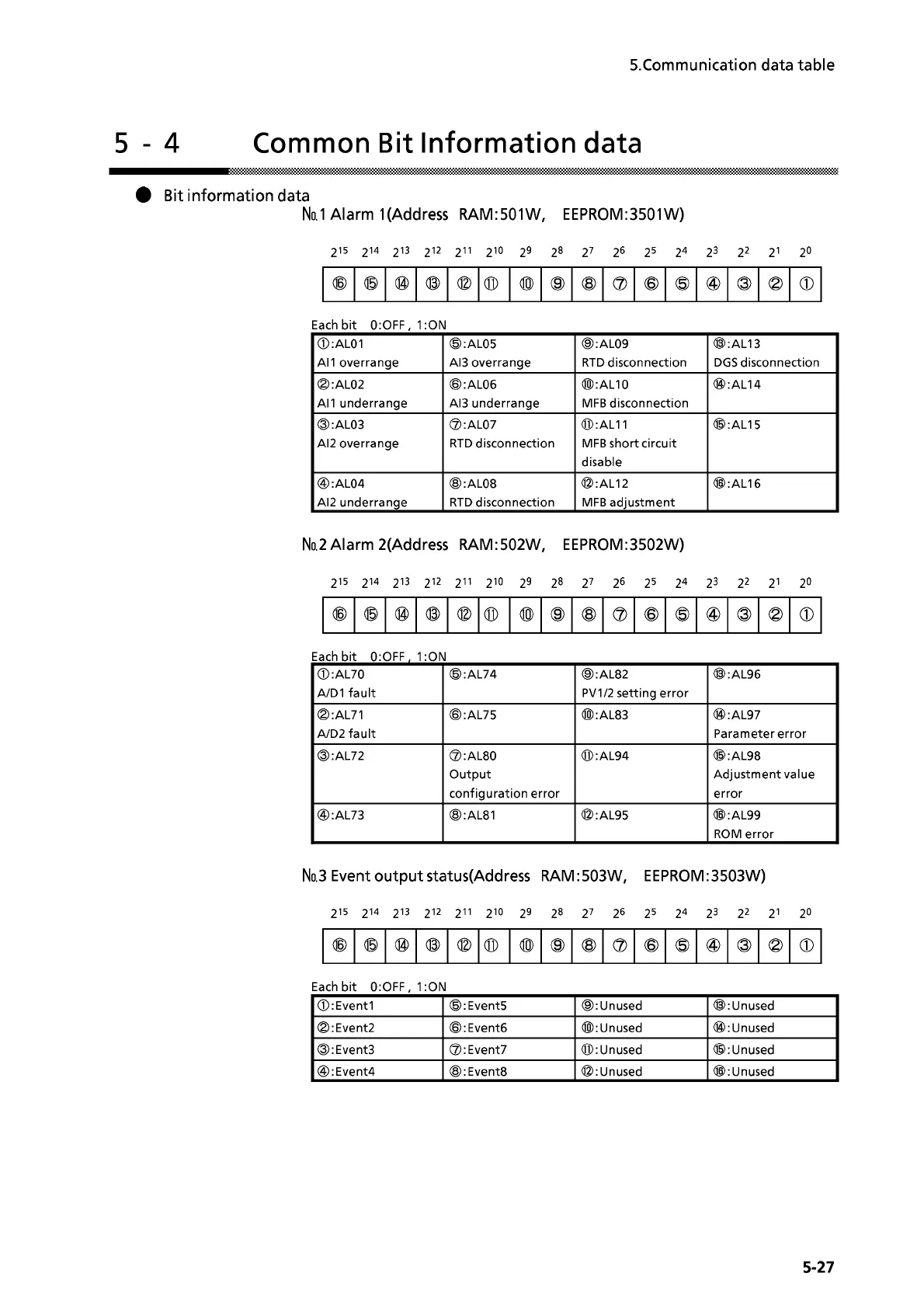 Yamatake DIGITRONIK SDC40A - Common Bit Information Data
