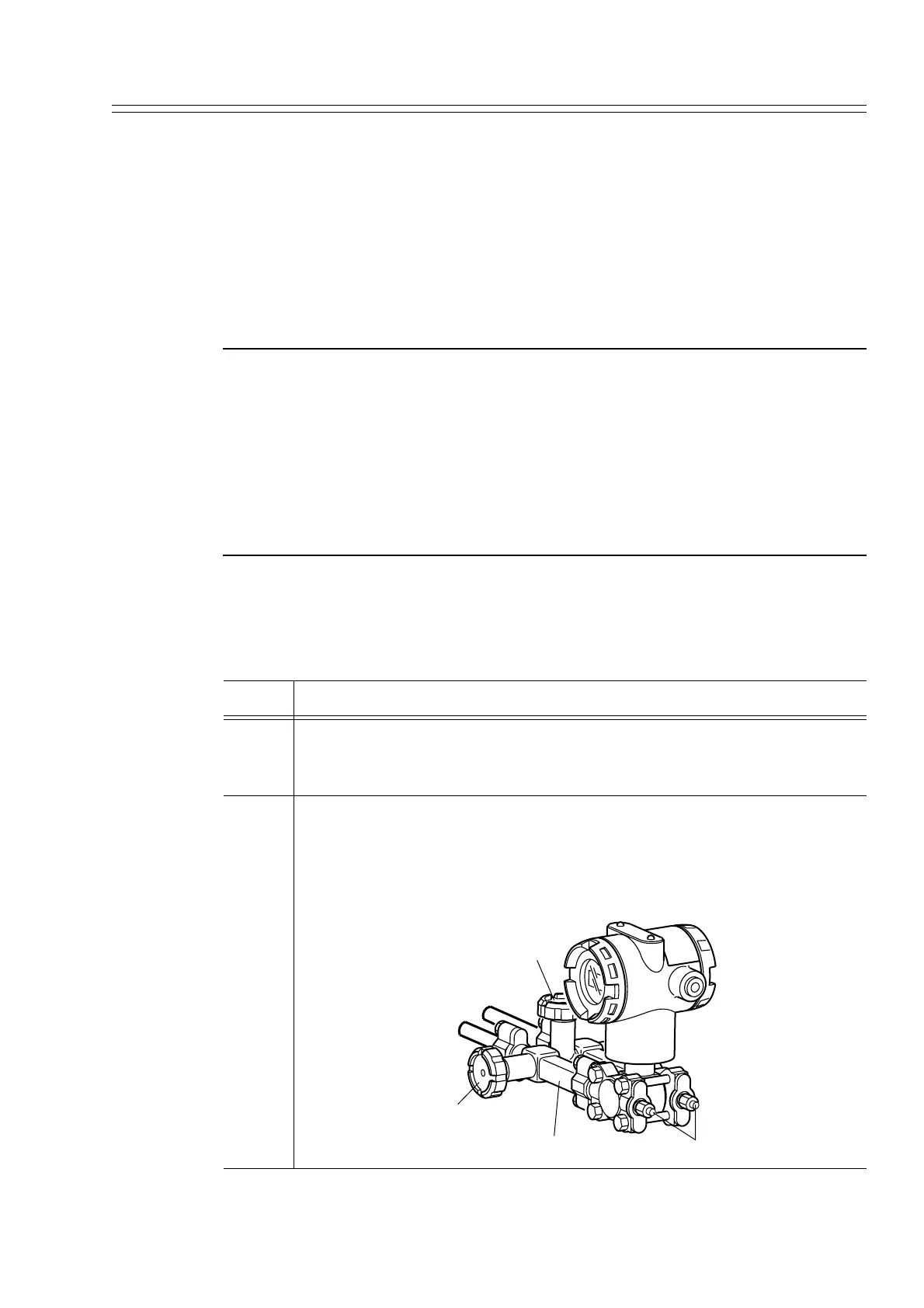 2 Fill with process fluid, the pressure-receiving part of the transmitter.