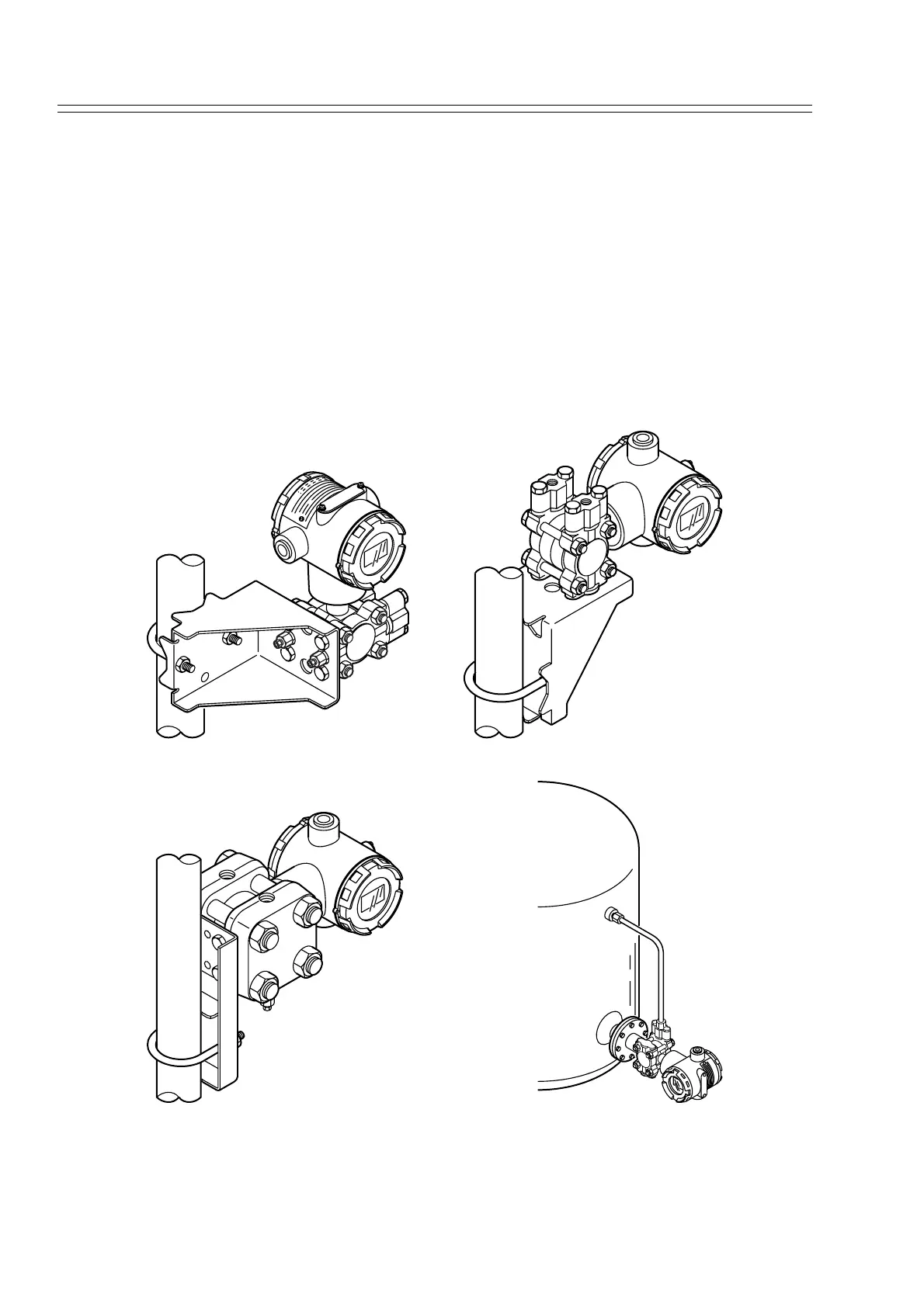 Figure 4-1 shows typical bracket mounted and flange mounted transmitter installations