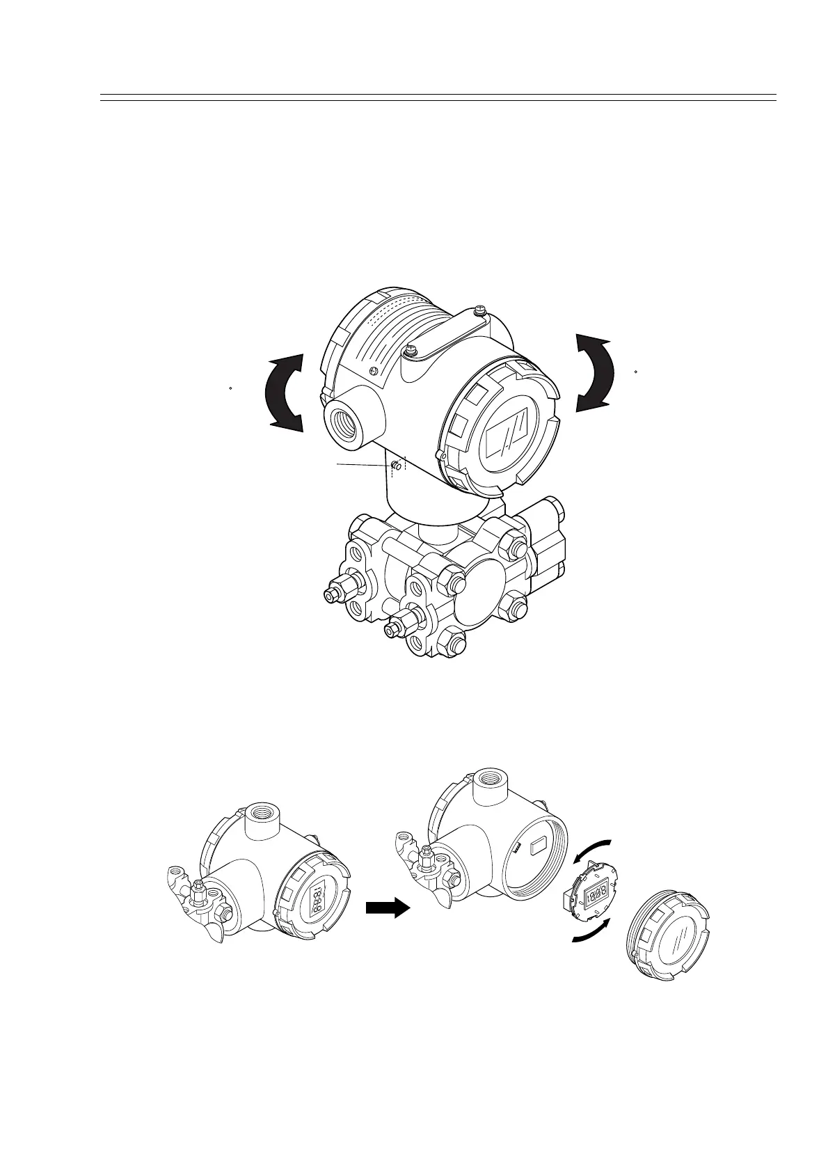 Loosen 3 mm set screw on outside neck of transmitter. Rotate electronics housing in a