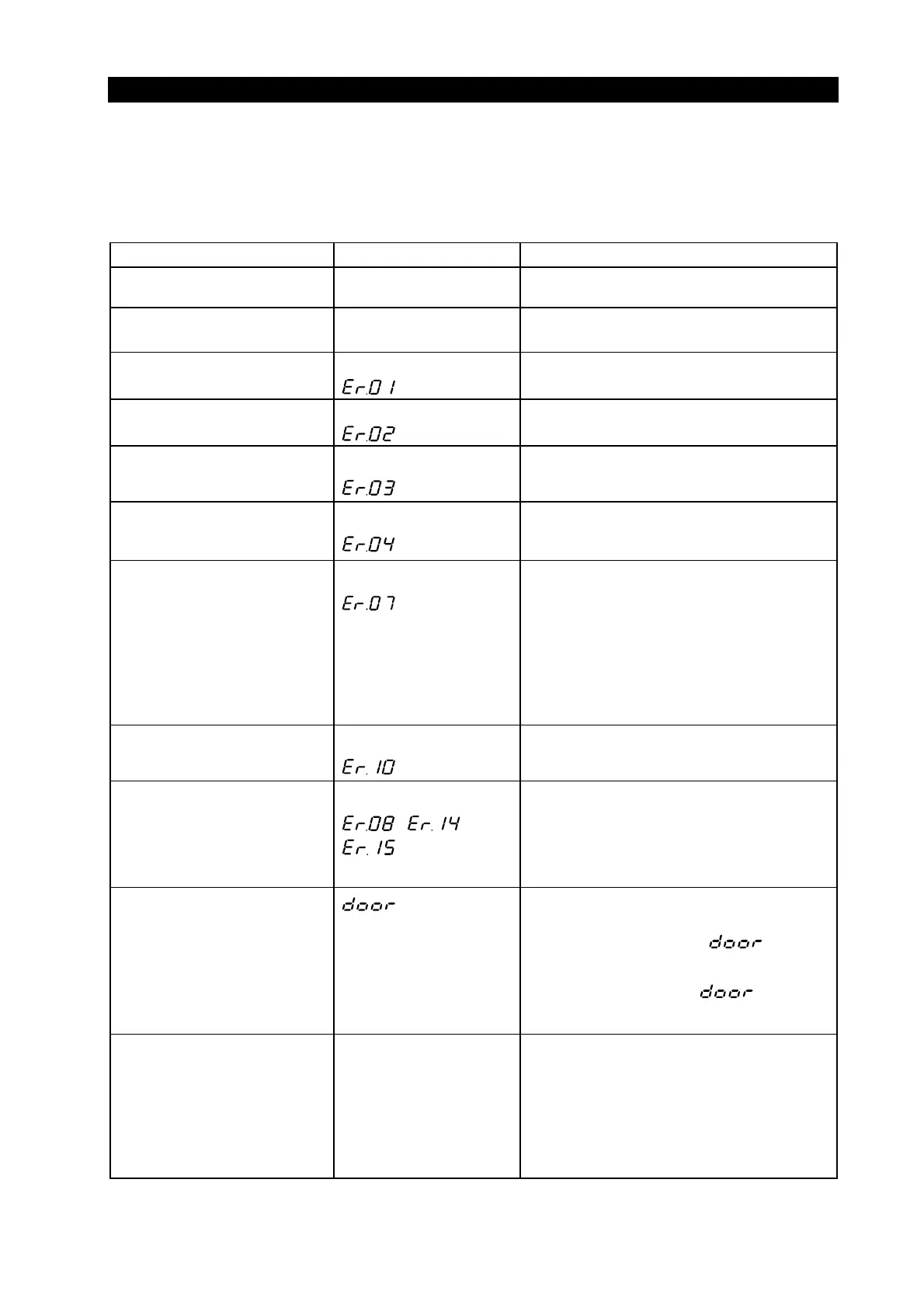 2. Motor thermal Protector No Display z Heater Overheating