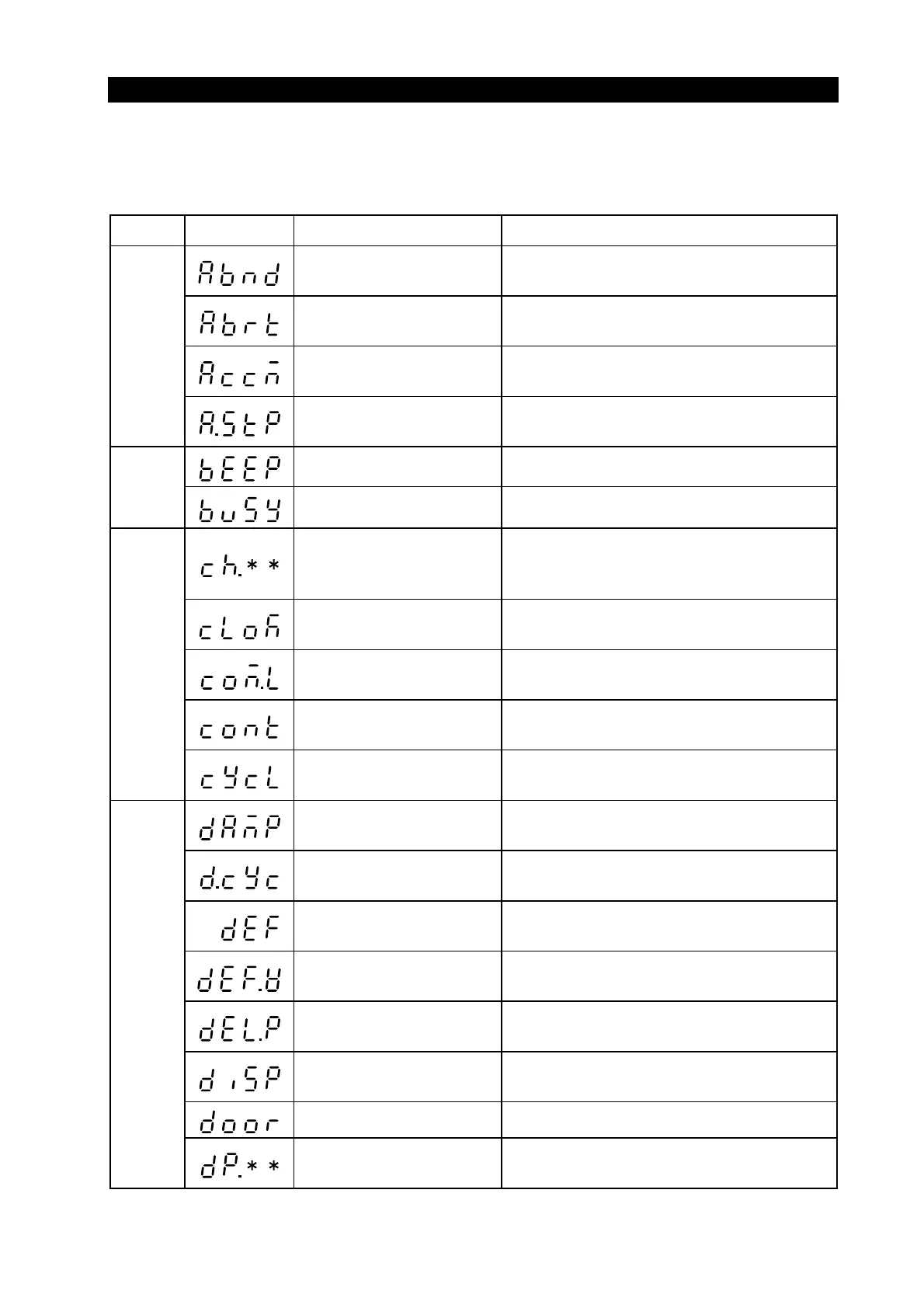 Capital Symbol Meaning of Abbreviation Meaning of Symbol in the display