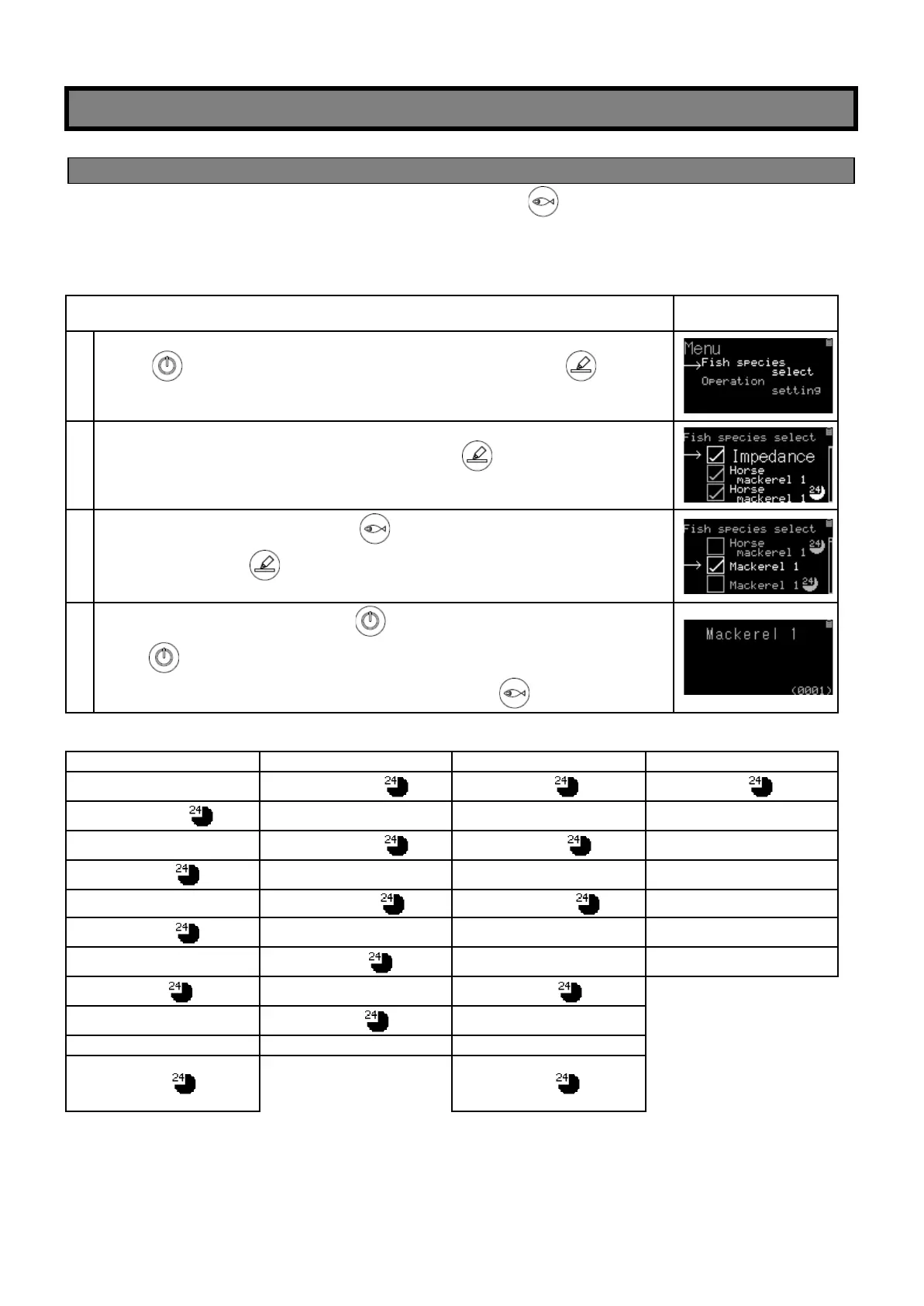 Move the cursor (→)by pressing key to a fish species (in this case,