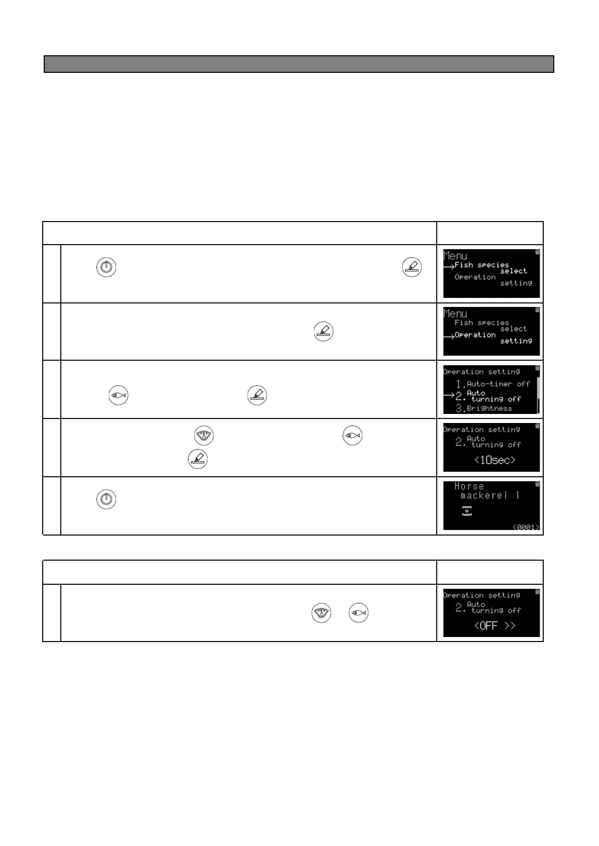 When the operation settings are displayed, move the cursor(→)to 2. Auto off 2 by