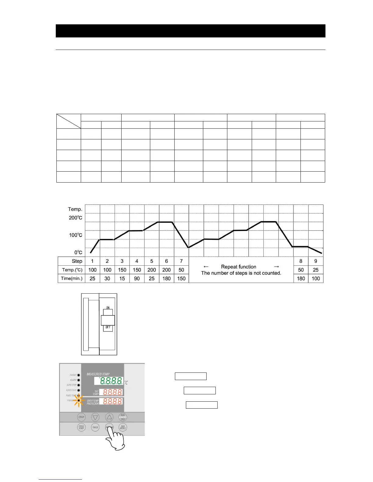 (center) and overheat prevention setting (bottom).