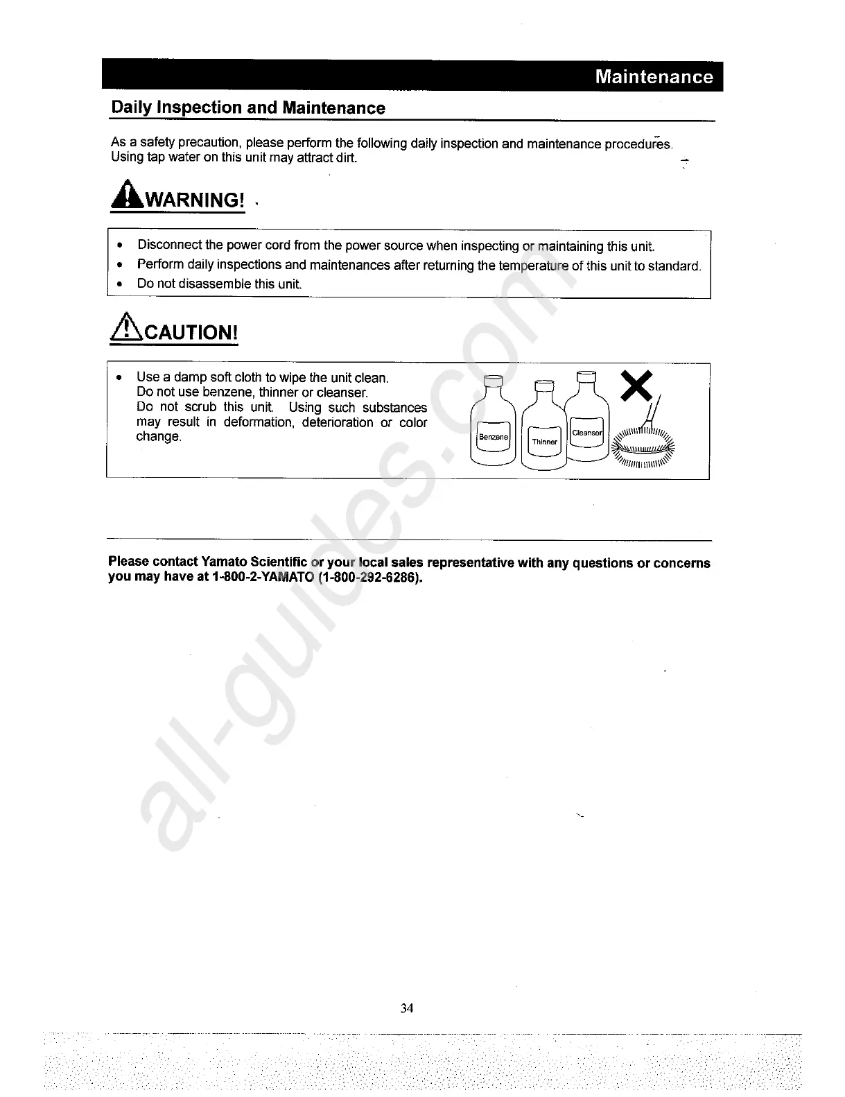 Yamato DKN810 - Daily Inspection and Maintenance; Safety Precautions for Maintenance