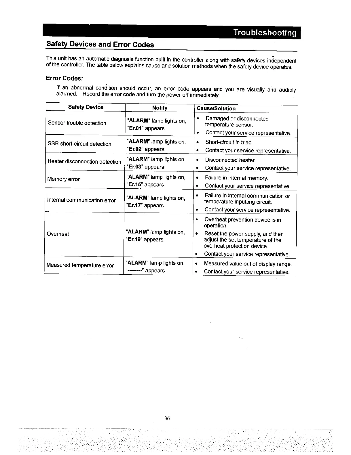 Yamato DKN810 - Troubleshooting Guide; Error Codes and Notifications