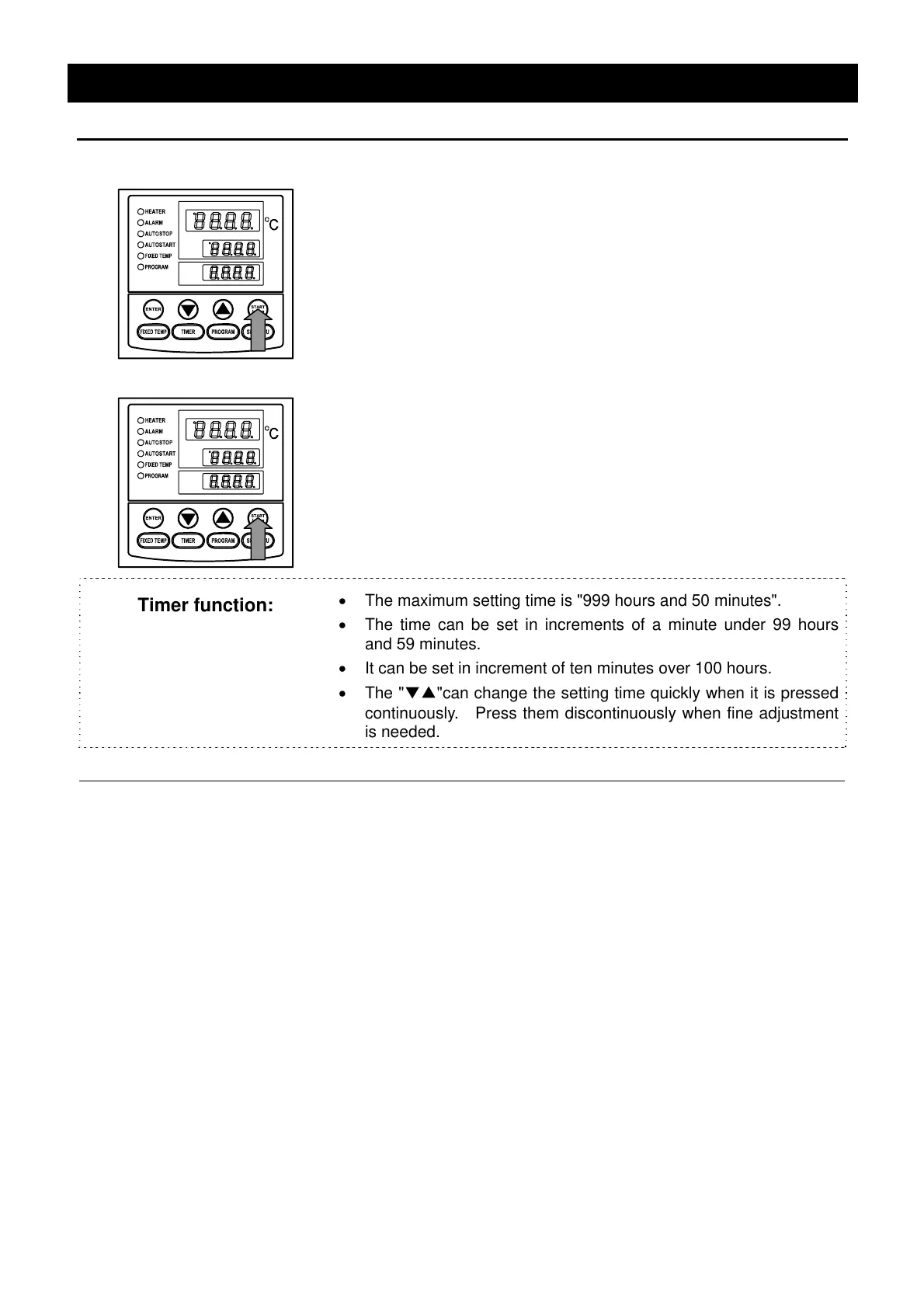 • The maximum setting time is "999 hours and 50 minutes".