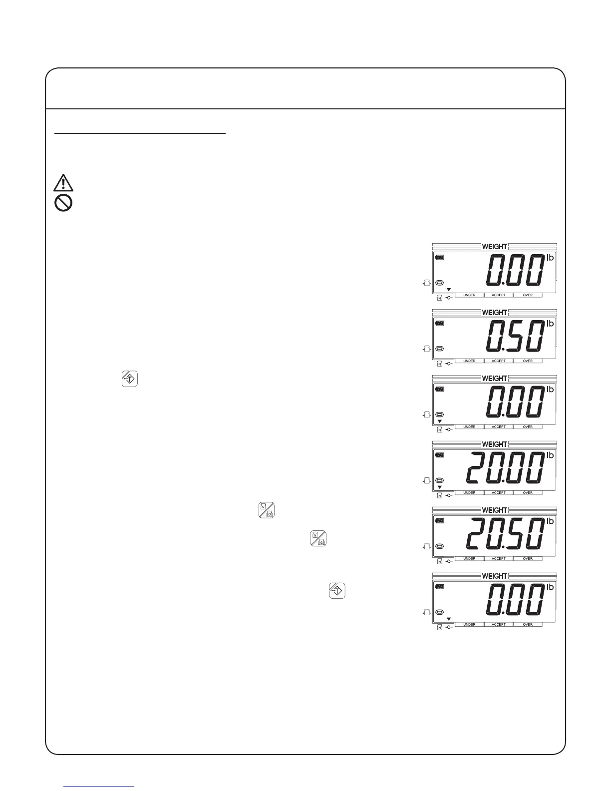 1. Begin with nothing on the weighing platform, the display reading zero,