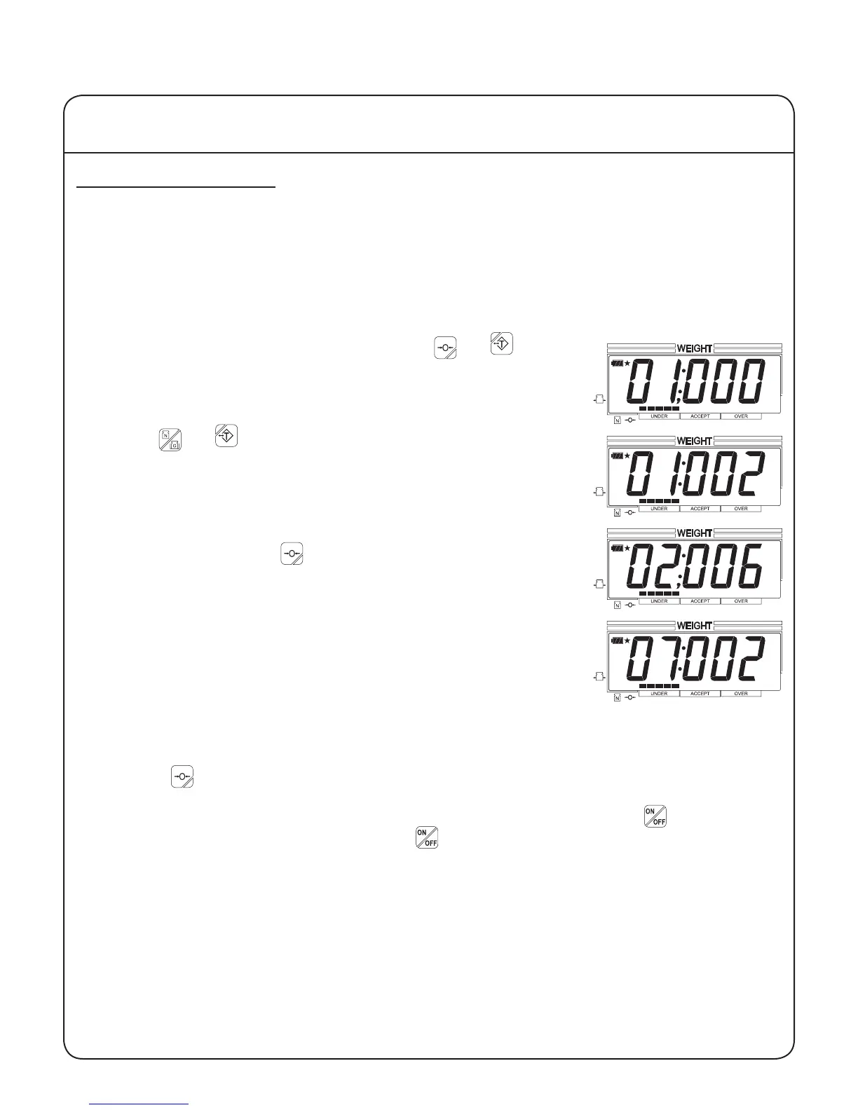 three seconds to turn the scale off. Press the to turn the scale on. The checkweighing function