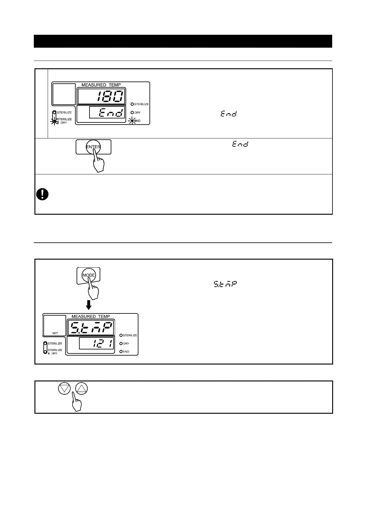 →Sterilize & Dry menu lamp lights.