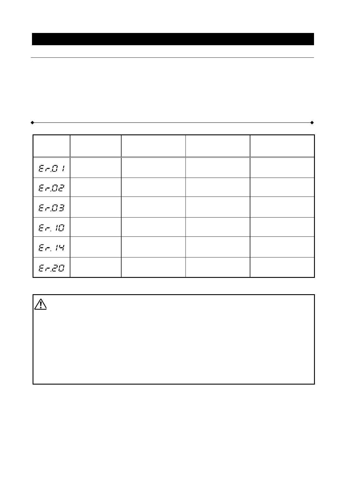 Sensor error Display with alert tone Heater circuit disabled Replace sensor, etc.,