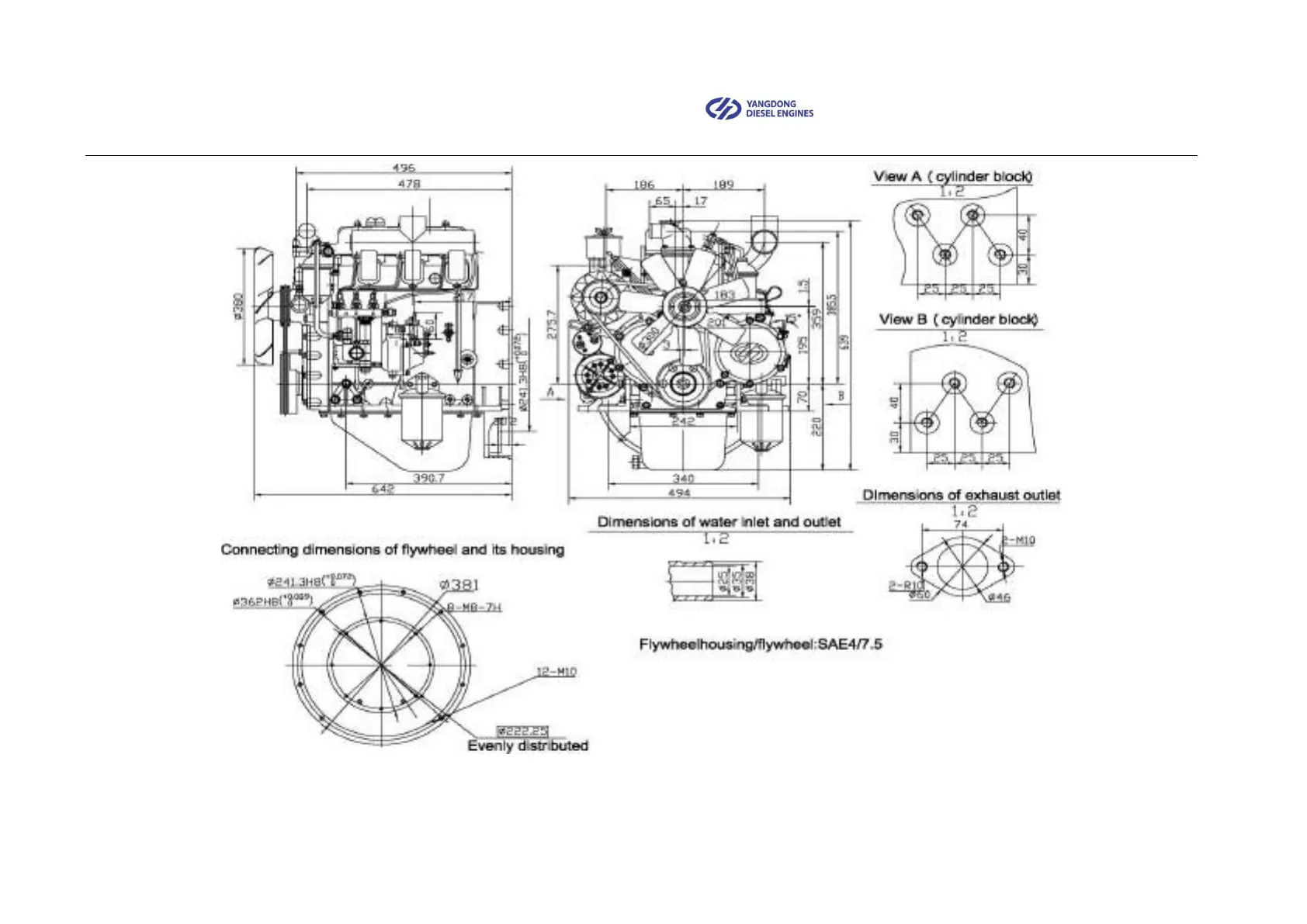 Schematic Diagram of Wiring Dimensions for installation of YD380D and YD385D