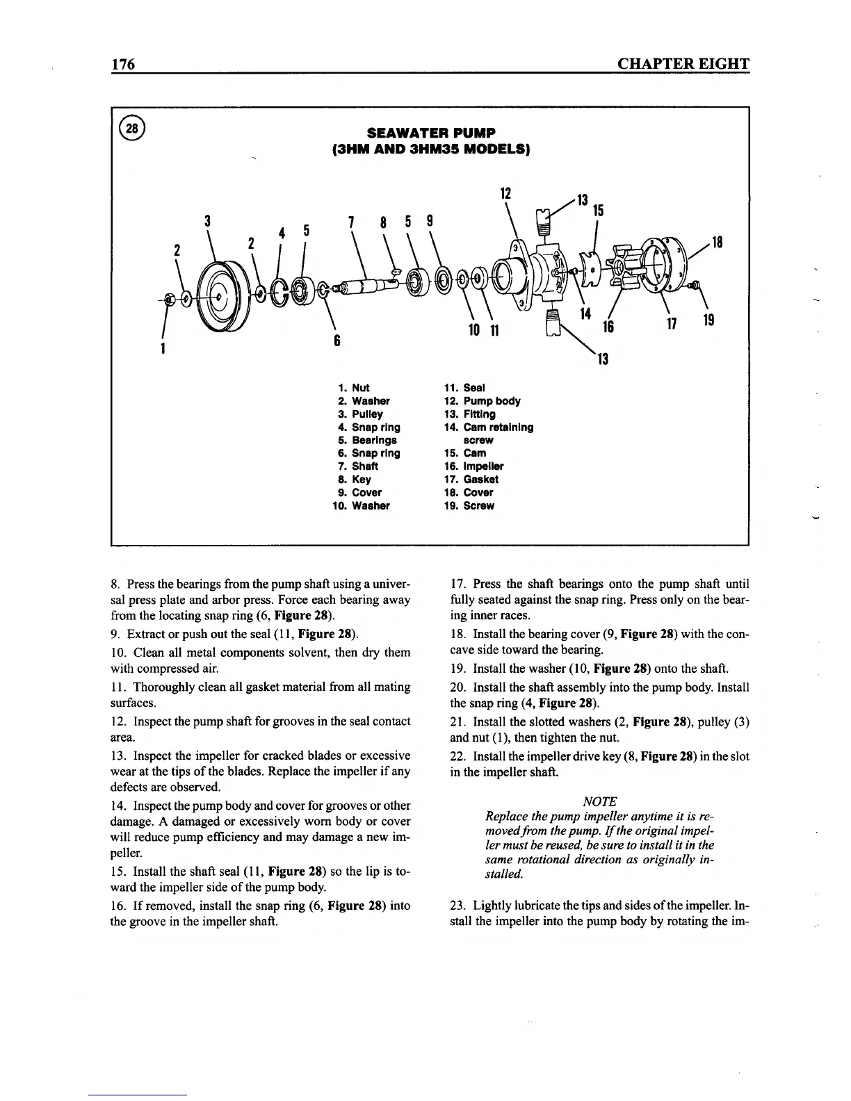 22. Install the impellerdrive key (8,