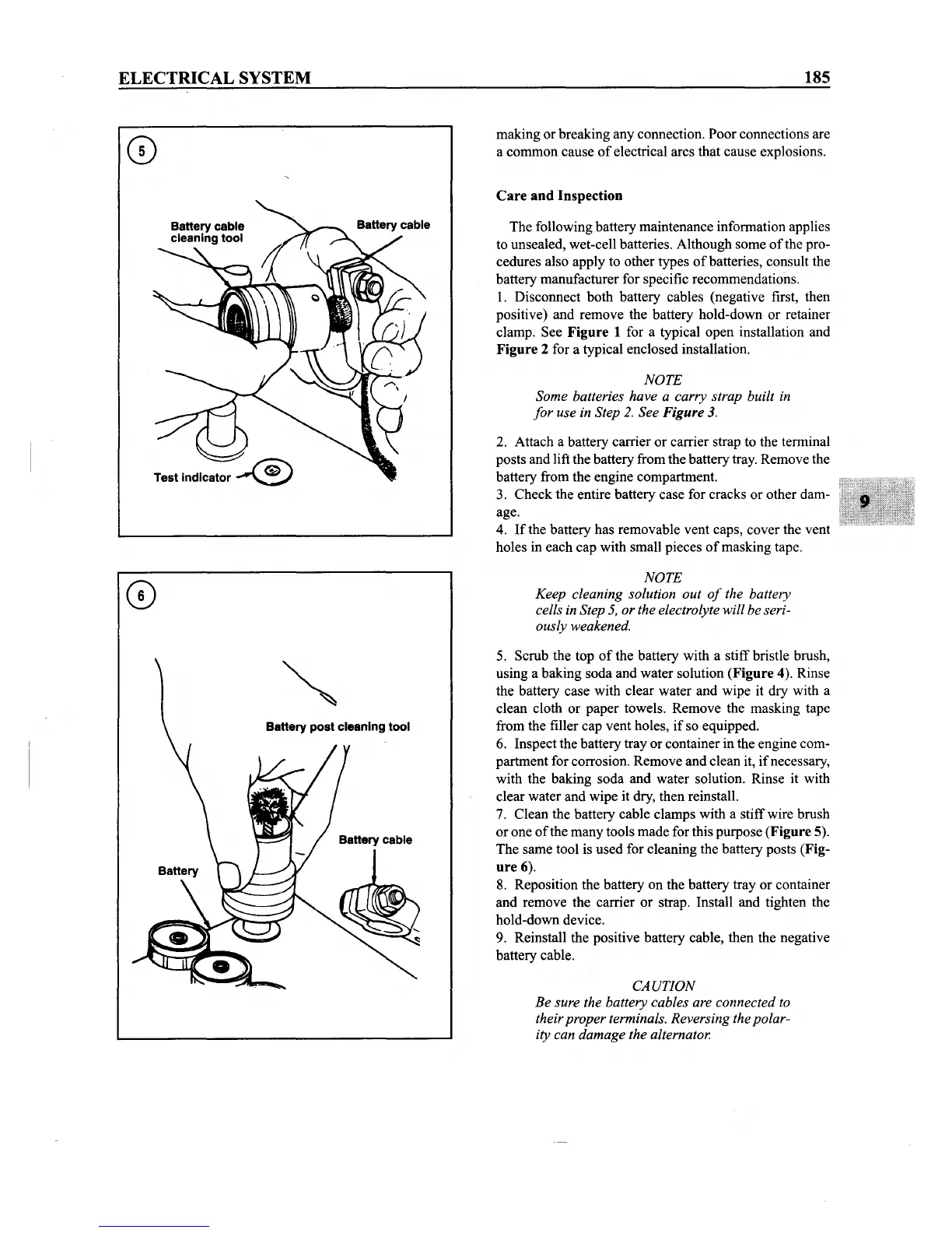 7. Clean the battery cable clamps with a stiffwire brush