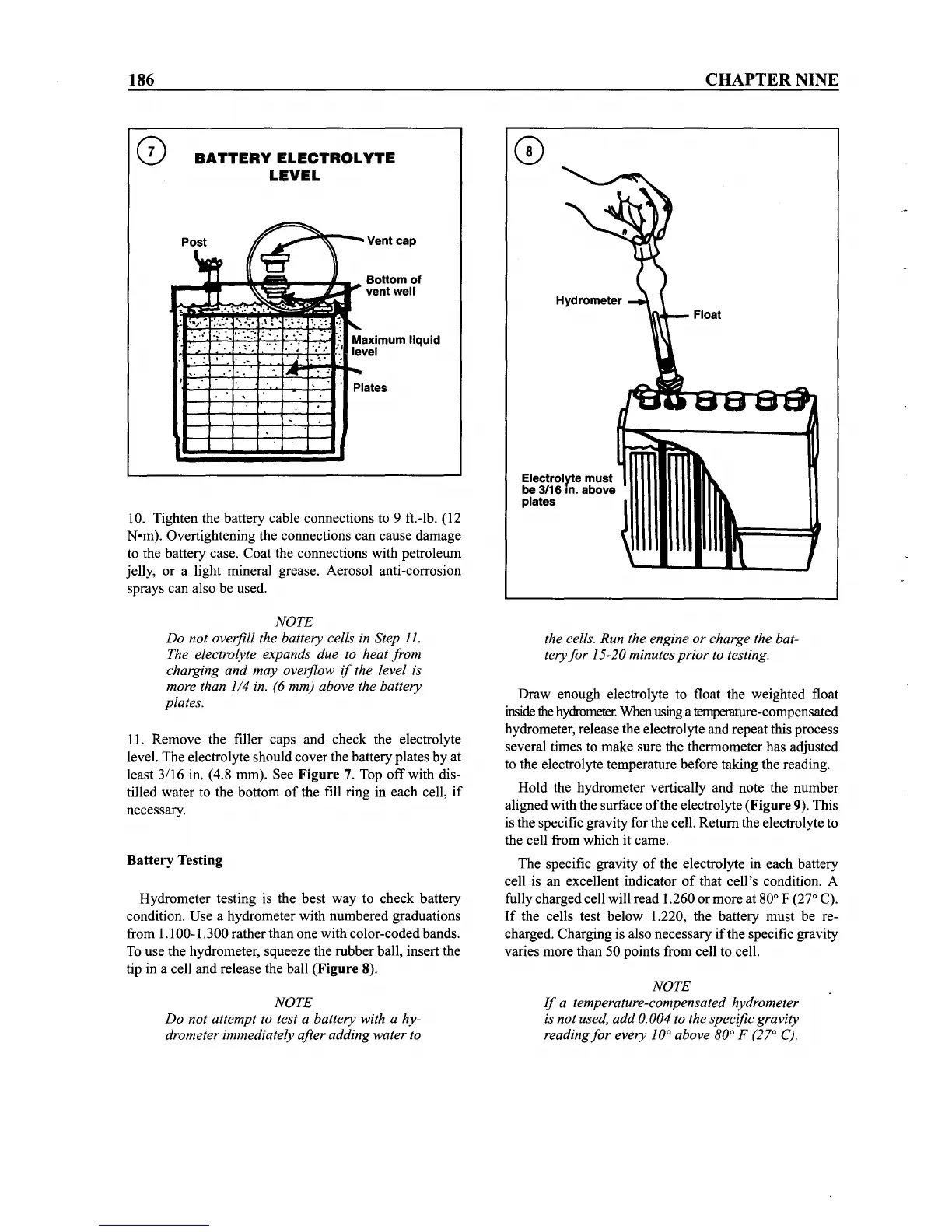 10. Tighten the battery cable connections to 9 ft.-lb. (12