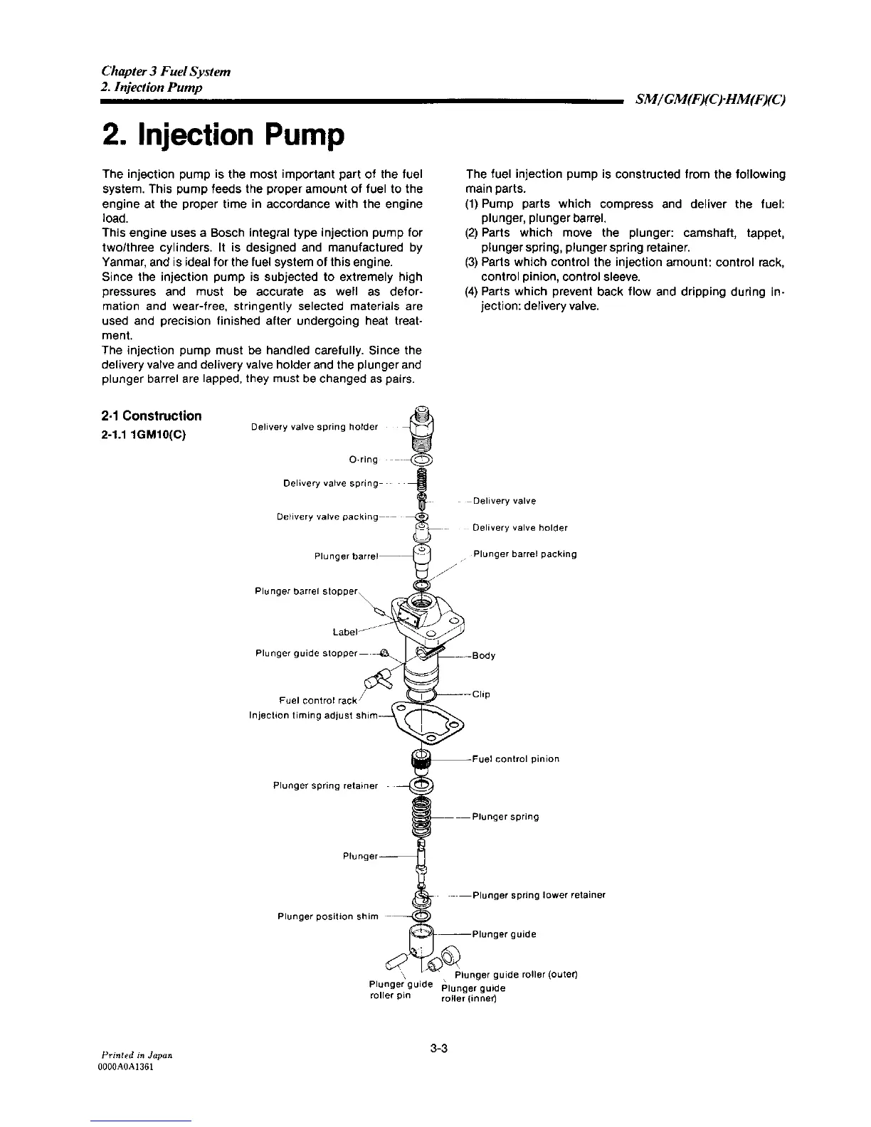 Yanmar 2GM20C - Injection Pump Construction