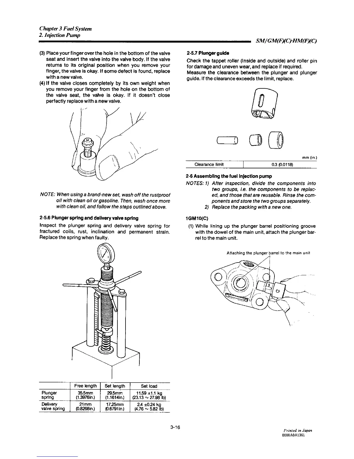 Yanmar 2GM20C - Assembling the Fuel Injection Pump; Plunger Spring and Delivery Valve Spring; Plunger Guide