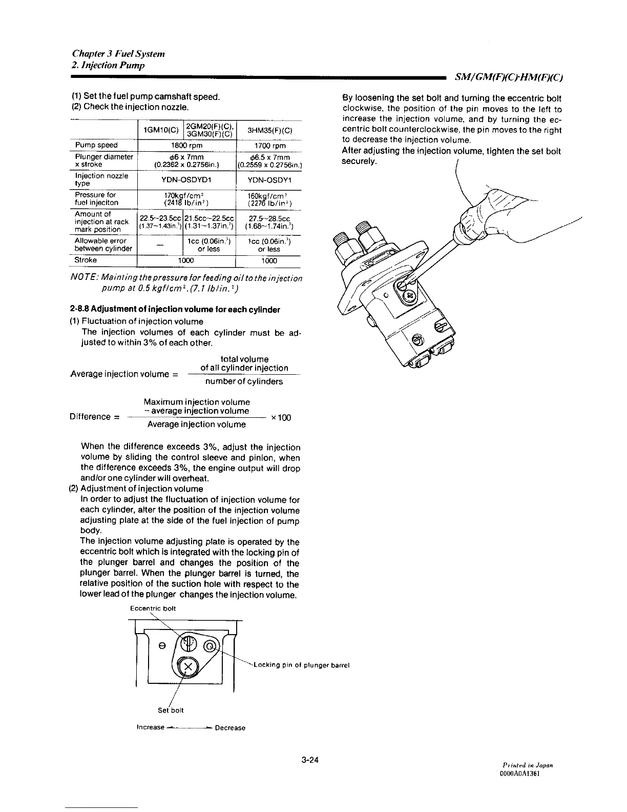Yanmar 2GM20C - Adjustment of Injection Volume for each Cylinder