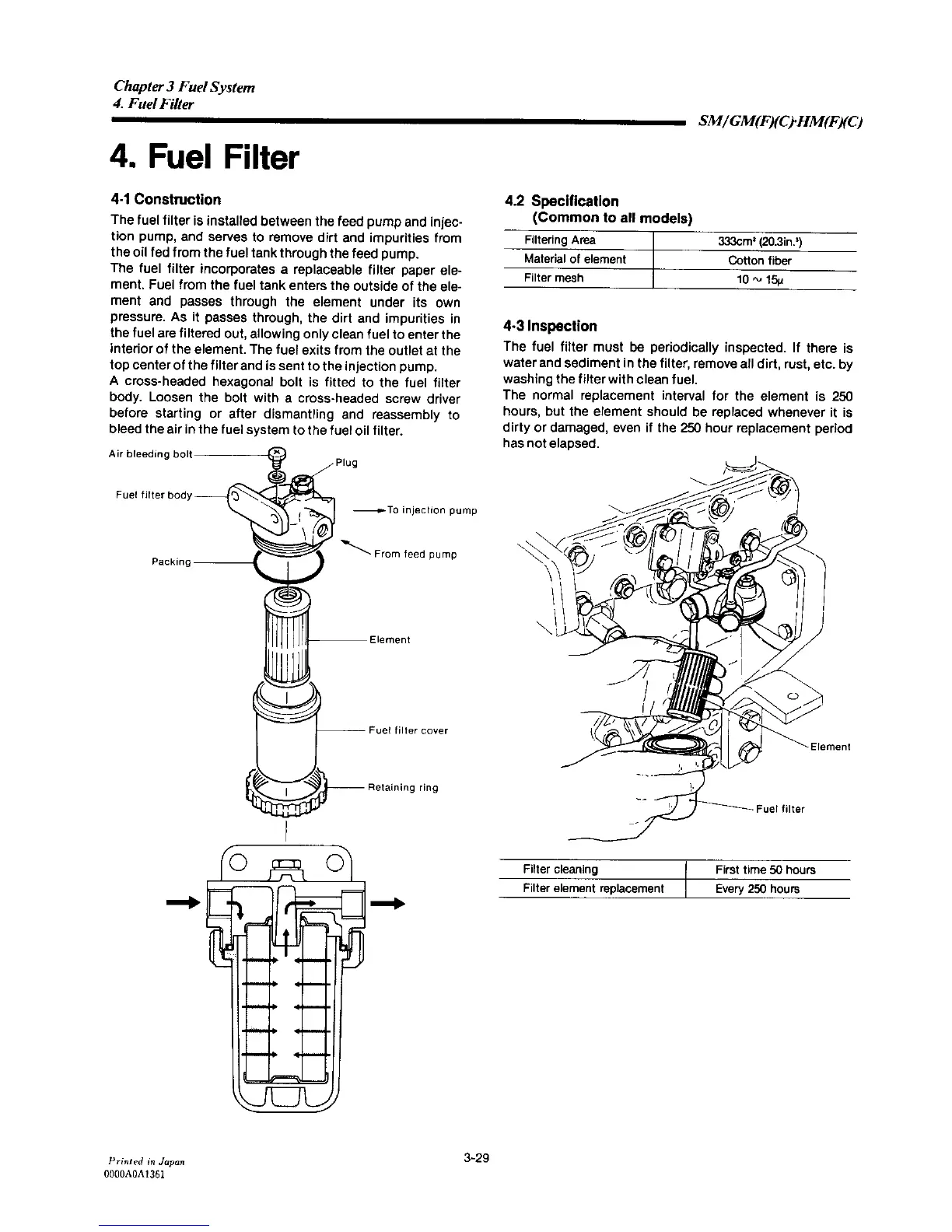 Yanmar 2GM20C - Fuel Filter Construction; Fuel Filter Specifications; Fuel Filter Inspection